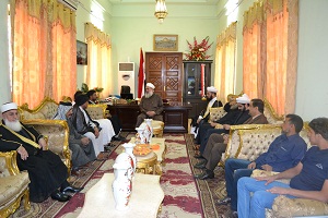 ألتقى سماحة المفتي ( رعاه الله ) اليوم 24/3/2013 في مكتبه ببغداد وفد محافظة النجف الاشرف برئاسة السيد مهند المشايخي. وكان اللقاء في اطار بحث امور المسلمين و التحديات التي تواجههم في المرحله الراهنه. و قد جاءت الزياره لتعزيز أوامر الاخوه و الوحده الاسلاميه و يهدف الى تقريب وجهات النظر بين جميع الطوائف الاسلاميه و نبذ الفرقه (( قل كل من يعمل على شاكلته فربكم اعلم بمن هو اهدى سبيلا ))