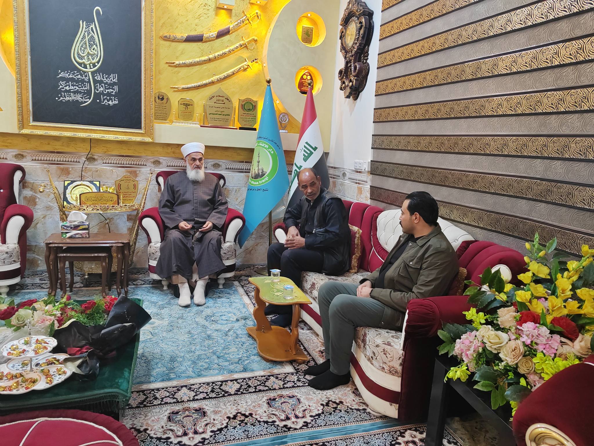 استقبل سماحة المفتي ( رعاه الله ) في مكتبه الرسمي ببغداد / ام الطبول / اليوم 18/1/2014 السيد مازن الحسني  والاستاذ ابراهيم الجحيشي من مدينة سلمان باك ، وكان اللقاء حول بناء قاعة مناسبات ومسجد في المدينة وحاجة اهل المنطقة لذلك كما أكد الوفد أنهم ممن يسمعون ويتبعون المفتي في كل الأمور وخاصة الشرعية منها .