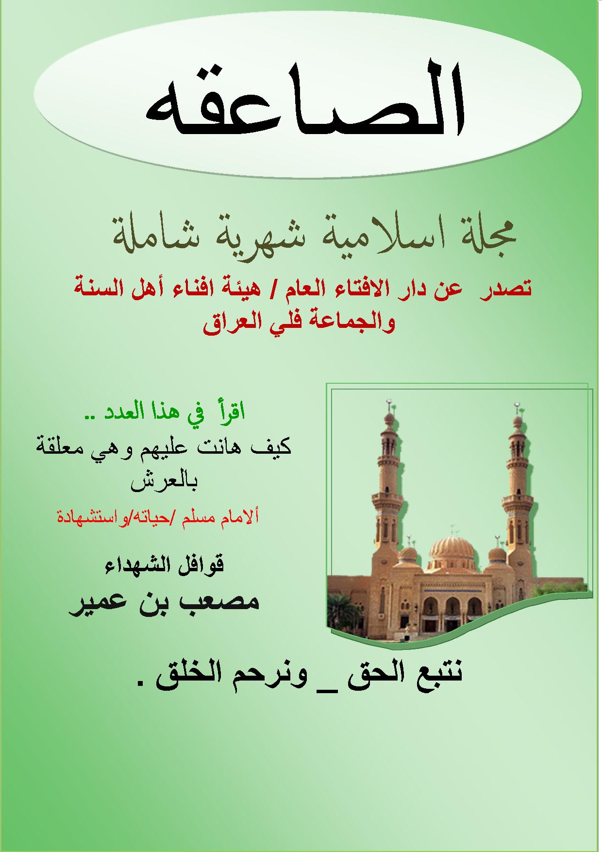 اليوم نهيكم محلة الصاعقة العدد الحادي عشر والصادرة عن دار الافتاء العام لاهل السنة والجماعة في العراق