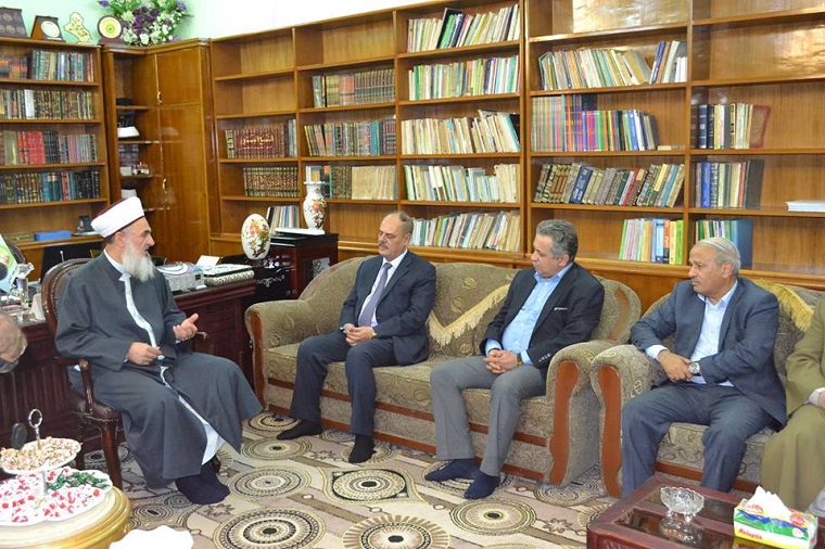سماحة المفتي العام ( أعزه الله ) المجاهد الشيخ الدكتور مهدي الصميدعي بلتقي في مقره بدار الافتاء السيد مؤيد اللامي نقيب الصحفيين العراقيين ، والوفد المرافق له الدكتور طالب بحر مدير قناة الرشيد الفضائية والسيد صلاح الذهبي مسؤول قناة الحرة ، تكلم السيد الضيف حول الأزمة التي يمر العراق والمظاهرات التي خرج بها الشعب في المطالبة بالاصلاح ومحاربة الفساد وانه يقف مع فتوى المرجعية في النجف وفتوى دار الافتاء العام التي ساندت المطالب من جانبه قال سماحته ان دار الافتاء بكامل فروعها في المحافظات تقف مع مطالب الشعب التي تدعو الى محاسبة الفساد ومقاضاة الفاسدين ، مطالبا المتظاهرين عدم تسييس المطالب أو صناعة عدو أو محاولة دس بعض المتضررين او الأحزاب المتصارعة او بعض بعض الحالات النفسية أو الثأر من جهة أو حزب أو شخصية بوالنتيجة تضعف المطالب وتظهر التكتلات فتختلف المسيرة من البناء والاصلاح الى الفوضى والمناوشات ورب لاقدر الله إن لم يحسب الأمر قد تجر الشعب الى حرب تحرق الاخضر واليابس ..