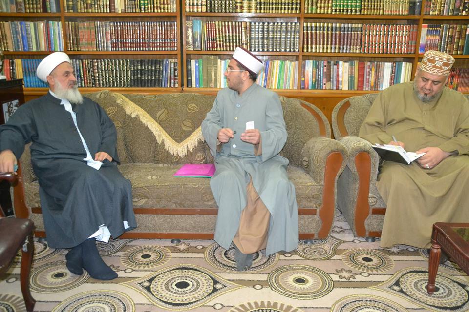 سماحة المفتي العام لاهل السنة والجماعة في العراق الشيخ الدكتور مهدي بن احمد الصميدعي (رعاه الله ) يلتقي في دار الافتاء العام اليوم الاربعاء 11/11/2015 الشيخ بلال الكبيسي امام وخطيب جامع علي بن ابي طالب في كبيسه . وجرى خلال اللقاء حوارا عاما . حيث نقل تحيات اهالي منطقته لسماحة المفتي العام . وذكر بأنهم مع المرجعية المتمثلة بسماحة المفتي العام. سائلا الله تعالى ان يحفظه من اجل خدمة الاسلام والمسلمين . وفي الختامك شكر سماحة المفتي الضيف على حسن المشاعر سائلا الله تعالى ان يزيح هذه الغمة عن اهل الانبار والعراق عموما .