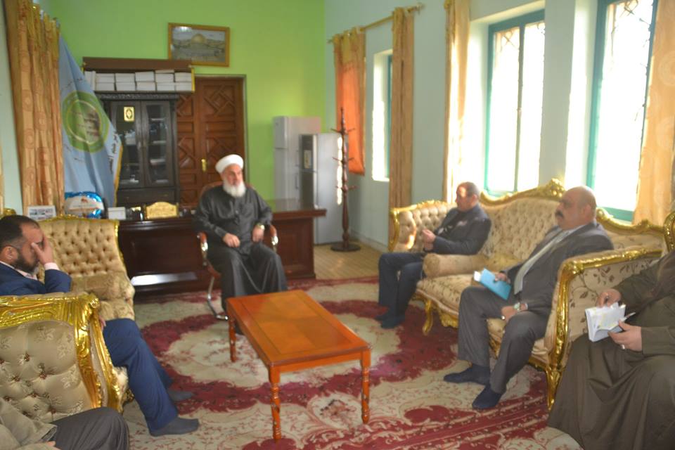 سماحة المفتي العام اعزه يلتقي في دار الافتاء العام الشيخ خلف صبار السامرائي والشيخ اسماعيل وجرى خلال اللقاء حوارا عاما عما يدور في بلدنا وبالاخص في قضاء سامراء وقد اثنى الضيوف على دور المفتي العام الداعي للوحدة ونشر الخطاب الوسطي المعتدل من جانبه شكر سماحته الضيوف كما اكد على ان يكون لشيوخ العشائر دور كبير في المحافظة على وحدة الصف ونشر روح الاخوة والتعاون بين ابناء المحافظة وعدم السماح لاي شخص يريد المساس بوحدة الشعب .