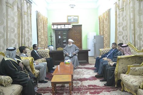 مفتي الجمهورية يستقبل وفدًا من قضاء الفلوجة وقضاء أبي غريب في منزله وسط العاصمة العراقية بغداد .