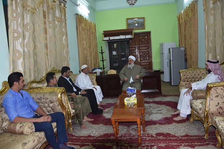 سماحة مفتي جمهورية العراق الشيخ الدكتور مهدي بن احمد الصميدعي (رعاه الله) يلتقي مساء يوم الاحد 30/10/2016 بمكتبه الخاص بدار الإفتاء العراقية الشيخ خليل ابراهيم والحاج سلام علي الذيابي والدكتور ابراهيم الشمري والسيد زياد محمد من اهالي النخيب . وجرى خلال اللقاء حوارا عاما عما يدور في محافظة الانبار منطقة البو علي الجاسم وناحية النخيب والرحالية واستمع سماحته الى شرح مفصل من الضيوف واوعز باتخاذ الاجراءات المناسبة بصددها محملا اياهم تحياته الى عوائلهم الكريمة واهالي النخيب سائلا الله تعالى اين يحفظ العراق وشعبه وان يمن على الجميع بالامن والامان والاستقرار