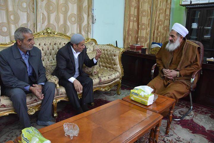 سماحة مفتي جمهورية العراق الشيخ الدكتور مهدي بن احمد الصميدعي (رعاه الله) يلتقي صباح يوم الخميس 1/12/2016 بمكتبه الخاص بدار الإفتاء العراقية الشيخ عدنان إبراهيم العزي والشيخ محمد إبراهيم العزي وجرى خلال اللقاء تبادل الحديث وثناء الضيوف على مواقف سماحته اعزه الله من اجل جمع وتوحيد أبناء الشعب والسعي الدؤوب للوقوف امام دعاة الفتنه والتفرقة سائلين الله تعالى ان يحفظه ويديم عليه نعمة الصحة والعافية . وفي الختام شكر سماحة المفتي اكرمه الله الضيوف على حسن المشاعر محملا إياهم تحياته الى عوائلهم الكريمة سائلا الله تعالى ان ينعم على بلدنا بالأمن والأمان والاستقرار.