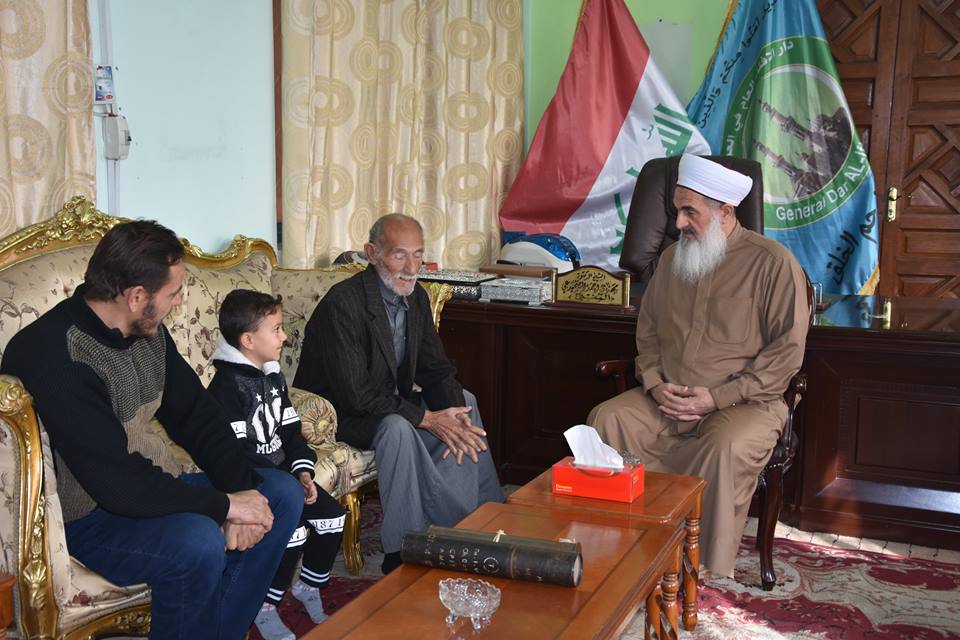 التقى سماحته صباح اليوم بمكتبه الخاص السيد موفق حميد عبد العزيز النعيمي وولده حاملين معهم تحيات ابناء عشيرتهم وشكرهم وامتنانهم له على مواقفه الانسانية والوطنية .سائلين المولى عز وجل ان يحفظه ذخراً للعراق والعراقيين ، وعرض الضيفان مستجر نسب قبيلتهم على انظار سماحته الكريمة وبارك سماحته ” رعاه الله ” على هذا النسب … محملاً اياهم تحياته للضيفان والى ابناء العشيرة والى كافة عشائرنا العربية الاصيلة.. متمنياً للعراق وكل اهله الخير والامان … والعيش بسلام ووئام . انه السميع العليم وبالإجابة قدير وشكر الضيفان سماحته على حسن الاستقبال والضيافة .