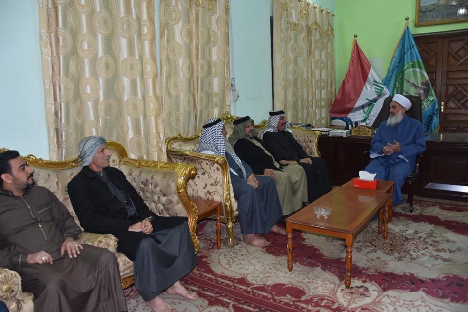 مفتي الجمهورية يستقبل وفدًا من قضاء الفلوجة وقضاء أبي غريب في منزله وسط العاصمة العراقية بغداد .