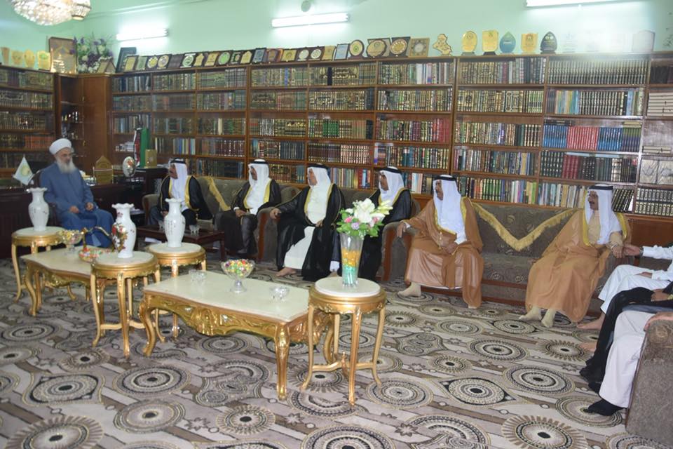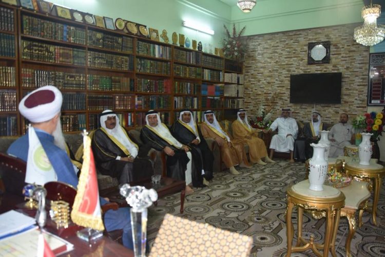 وفد مكون من عشيرة البوعيسى وظم الوفد كل من الشيخ اسماعيل يوسف والشيخ محمود عبد والشيخ حسان والشيخ عبد الرزاق حسني والشيخ رعد خليوري والشيخ هادي عليوي والشيخ ياسين يوسف والشيخ خميس خلف والشيخ اسماعيل بديوي وعدد من المواطنين ، يزور سماحة المفتي في مقره الخاص بدار الافتاء بمناسبة عيد الفطر الفضيل …. داعين الله له بالصحة والسلامة والتوفيق ، وأن يجعله الله خيمة حب ووئام وتعايش لأبناء الشعب العراقي … من جانبه شكر سماحته هذه الخطوة الكبيرة في هذا اليوم السعيد ، وهم يقطعون المسافة الطويلة في يوم الحرالشديد ، قال سماحته إن هو إلا خلق رفيع وتواضع من الوفد ، شاكرا هذا السعي المبارك شاكرا الله عزوجل لهم ويبعث بالتحية والتقدير لجميع أبناء مناطقهم ، ولعوائل الوفد بالصحة والأمان .