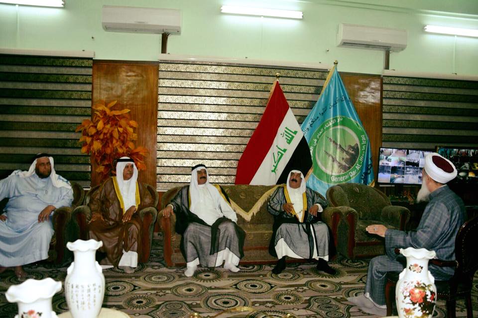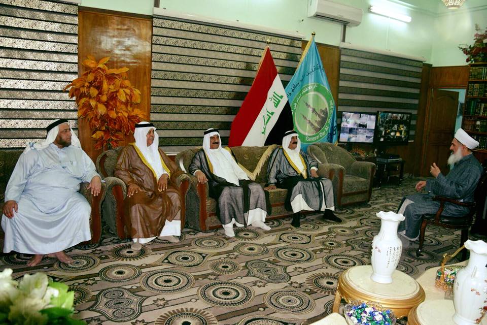 التقى سماحة مفتي جمهورية العراق الشيخ الدكتور مهدي بن احمد الصميدعي “رعاه الله” مساء يوم الاربعاء في مكتبه بدار الافتاء العراقية الشيخ صباح الزوبعي والشيخ جمال ضاحي المساري شيخ المسارة والشيخ ضاحي ابو وجدي والشيخ مشعان العكاب وفي بداية اللقاء ايد الضيوف الكرام جهود سماحة المفتي “حفظه الله ورعاه” وموقفه الثابتة والجريئة تجاه دغاة الفتنة ومحاربته مشروع التقسيم مبينين ان الكثير قد اوهم بسبب تصدر زمر الانحلال مما ادى الى تعرض النسيج الاجتماعي لأزمة ومحاولات تفكيك عشوائية ،هذا وقد اوضح الوفد ان سماحة المفتي المتصدي الواضح والمعروف في محاربة ادوات الخراب والطائفية معلنين تأيدهم التام لسماحته ومشروعه الذي يرفع شعار الوحدة والانسجام والتعايش السلمي ، من جانبه حذر سماحته من مؤمرات قد يستغلها الكثير من ضعفاء النفوس الذين خلفهم الاحتلال فلا بد من اخذ الحيطة والحذر وعدم السماح لمن يريد ان يعبث بأمن واستقرار البلد داعيا الله تعالى ان يعم الامن والسلام في سائر بلاد المسلمين.