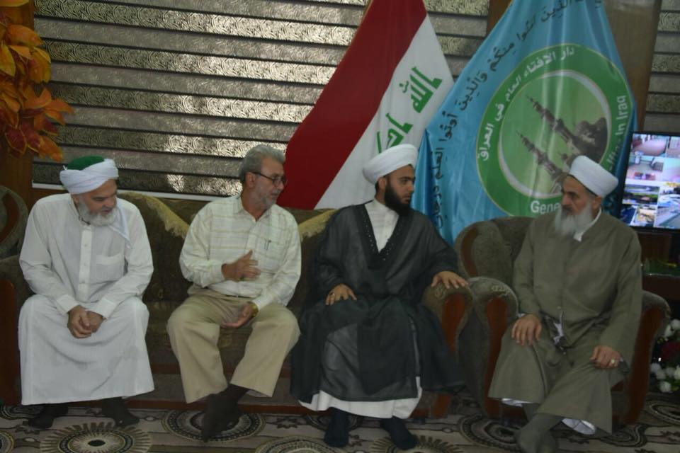التقى سماحة مفتي جمهورية العراق الشيخ الدكتور مهدي بن احمد الصميدعي “رعاه الله ” صباح يوم السبت في مكتبه بدار الافتاء العراقية الشيخ حيدر التميمي امام وخطيب جامع السامرائي في منطقة بغداد والشيخ خالد عبدالله الزوبعي أمام وخطيب جامع قمر. علي والحاج صبري التميمي ووفد من محافظة الانبار من الجديدة , وكانت الزيارة في اطار التباحث والتواصل مع دار الافتاء العراقية واسلام على سماحة المفتي “سدده الله تعالى “مثمنين كل الجهود التي يبذلها مع الائمة والخطباء في سبيل تذليل الصعاب ونشر الاخوة والتعاون بين ابناء البلد الواحد.