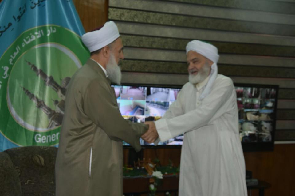 مفتي الجمهورية يلتقي في مكتبه بدار الافتاء العراقية وفدا من مؤلفا من الشيخ الدكتور نوري الفلوجي والدكتور أحمد ابراهيم المدرس والدكتور الاعلامي الاستاذ خالد القيسي.