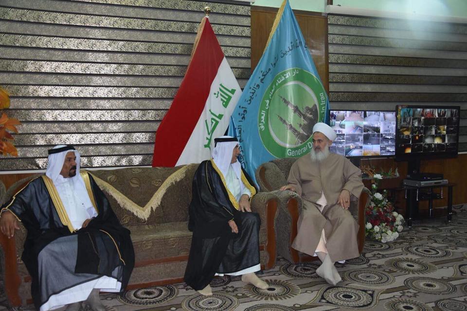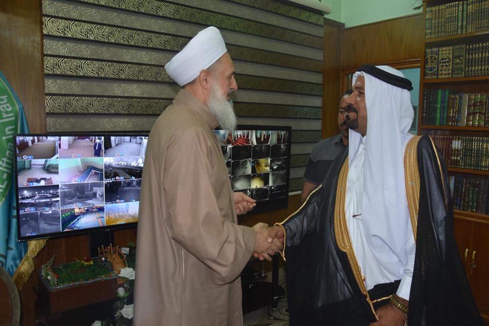 استقبل سماحة مفتي جمهورية العراق الشيخ الدكتور مهدي بن احمد الصميدعي “سدده الله” في مكتبه الخاص مساء يوم الثلاثاء 24 ذي الحجة 1439 هجرية 3 أيلول 2018 _ وفد الشيخ ماجد العيساوي والشيخ حمادي عليوي العيساوي والرائد علاوي حسن _ بمناسبة عيد الأضحى المبارك _ تقدم المهنئون لسماحته بالشكر والعرفان على نعمة الاسلام بفضل هذا العيد وايامه المباركة التي يتزاور المسلمون فيها _ سائلين الله العلي القدير أن يجعله خيمة خير لهم وللعراقيين جميعا ، من جانبه شكر سماحته الضيوف الكرام على إحياء سنة التزاور ، والتواصل الاجتماعي في ايام العيد حيث انها أندرست في السنوات الماضية ، وخاصة بين العلماء وبين أبناء الأمة الاسلامية ، وهذا يحيي روح المودة والتعاون شاكرا لهم خطوتهم ، ومحملا اياهم تحياته وسلامه لعوائلهم الكريمة .