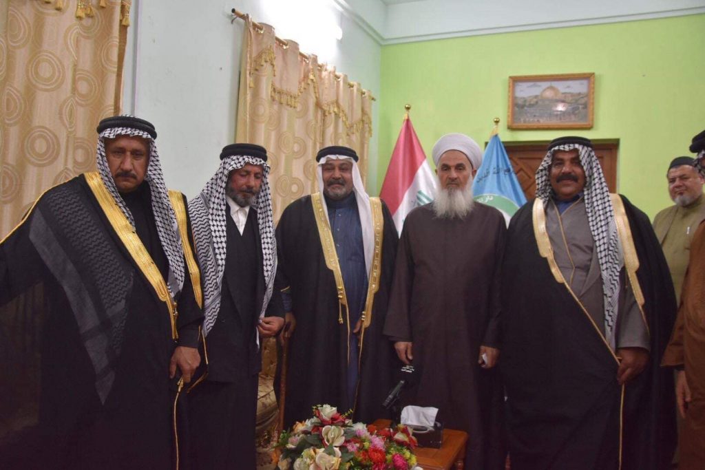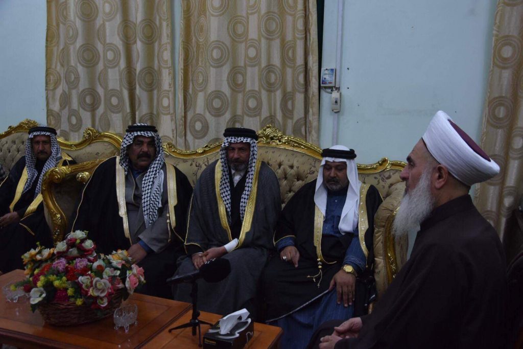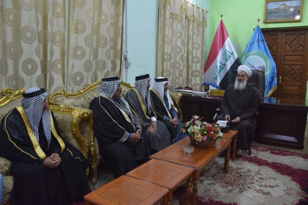 التقى سماحة مفتي جمهورية العراق الشيخ الدكتور مهدي بن احمد الصميدعي ” رعاه الله” في مكتبه بدار الافتاء العراقية مساء يوم الاحد وفد من شيوخ ووجهاء العشائر وضم الوفد كل من الشيخ عبد العزيز النمراوي والشيخ زكريا جمال سلطان والشيخ عامر شاهر اللهيبي والشيخ محمود النمراوي