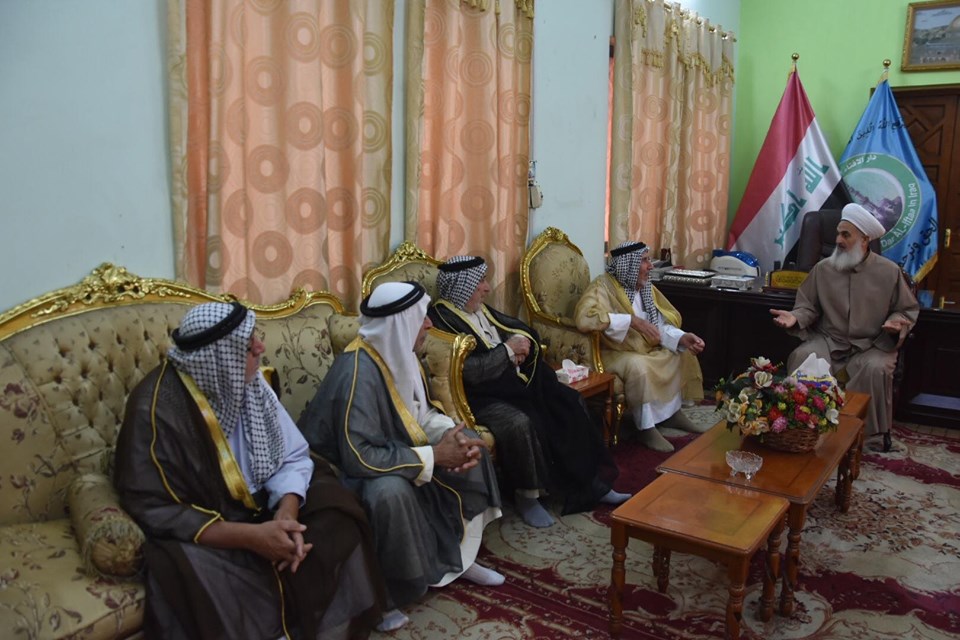 مفتي الجمهورية يستقبل وفدًا من قضاء الفلوجة وقضاء أبي غريب في منزله وسط العاصمة العراقية بغداد .
