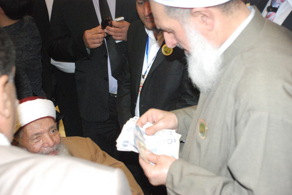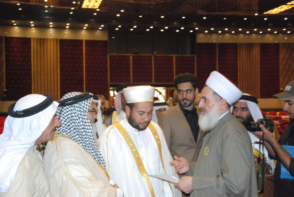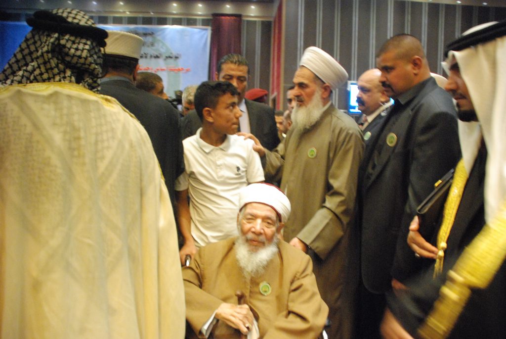 2. خلال المؤتمر تفاجيء سماحة مفتي الجمهورية حضور الشيخ محمد صالح العبيدي العالم الحنفي يدفع على كرسي فقام اليه وشكره ، فإذا بلشيخ شفاه الله تعالى يطلب مساعدته فإنه مريض فقام سماحته ومعه ولده البار مناف بإدخاله المستشفى ومتابعته … وهو يقول له ياشيخ ادعوا الله لي فعسى الله أن يدفع عنه شرّ الأشرار ومكر الماكرين … باعتبار أن المريض له دعوة … فبكى رحمه الله وقال حسبنا الله ونعم الوكليل العالم اذا مرض ليس له الا الله … المكتب الاعلامي / دار الافتاء العراقية