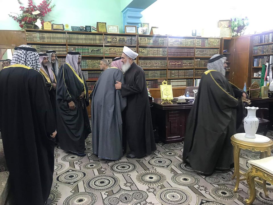 استقبل سماحة مفتي جمهورية العراق الشيخ الدكتور مهدي بن احمد الصميدعي ” رعاه الله تعالى ” بمكتبه , وفداً من شيوخ ووجهاءقبيلة بني زيد مع وفد من وجهاء قضاء ابي غريب , أكد الوفد دعمهم المطلق لمواقف مفتي الجمهورية وأنهم جداً مقتنعون بالذي يقوم به من الدور الشجاع والموقف الواضح .