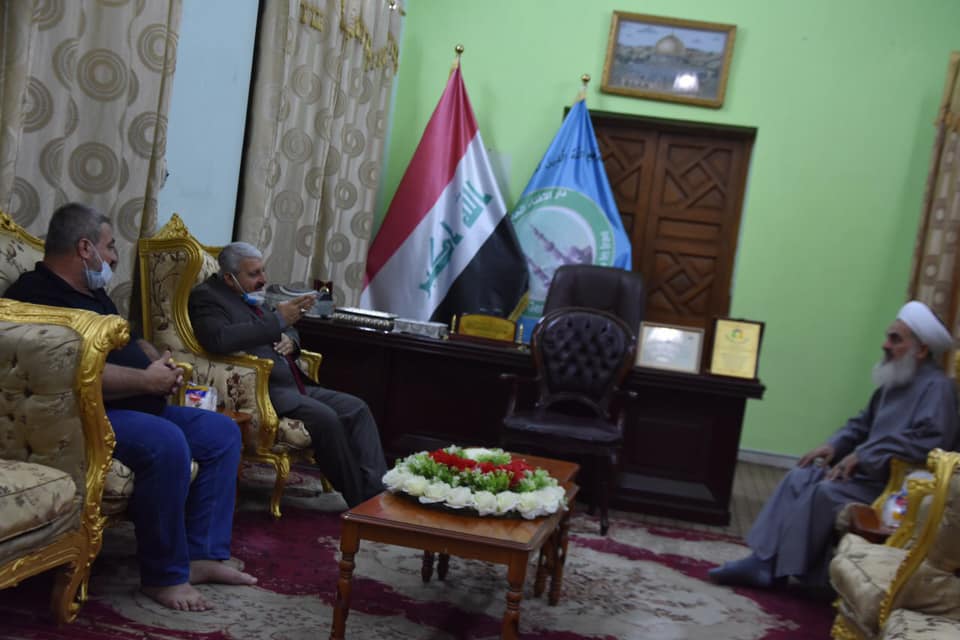 التقى سماحة مفتي جمهورية العراق الشيخ الدكتور مهدي بن احمد الصميدعي ” رعاه الله بمكتبه في دار الافتاء العراقية الشيخ مؤيد الربيعي مدير علاقات بغداد / كتائب الامام علي والسيد حسام عباس وكانت الزيارة للسلام على سماحة المفتي والتواصل ، هذا وقد اشاد الشيخ مؤيد بدور حركة المقاومة الاسلامية احرار العراق وتصديها لزمر عصابات داعش الاجرامية .