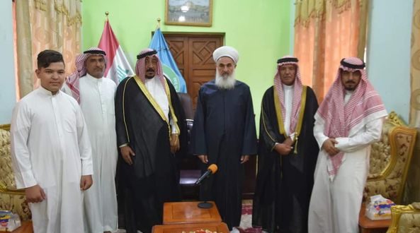 التقى سماحة مفتي جمهورية العراق ” رعاه الله تعالى ” في مكتبه بدار الافتاء … صباح اليوم الاحد 10 صفر 1442 هجرية 27 أيلول 2020 _ وفد محافظة البصرة برئاسة الشيخ سعد ثامر الزوبعي والشيخ قاسم محمد الزوبعي والشيخ فيصل مصطفى الدوسري والشيخ عبدالخالق عبد الحي الدوسري … جاءت الزيارة في اطار تأييد دار الافتاء العراقية لسعيها في نشر دعائم التعايش السلمي بين مكونات المجتمع العراقي ، ونبذها كل أوجه الخلاف الدينية والاجتماعية والسياسية التي خلفها الاحتلال البغيض … مثمنين دور سماحة المفتي وصبره وجلادته في الثبات وعدم التأثر بحرابة دعاة الفتنة والحزبية المقيتة ومرتزقة الاحتلال ، من جانبه حمّل سماحته سلامه وتحياته لاهالي محافظة البصرة الفيحاء … سائلا الله لهم الامن والسلامة .