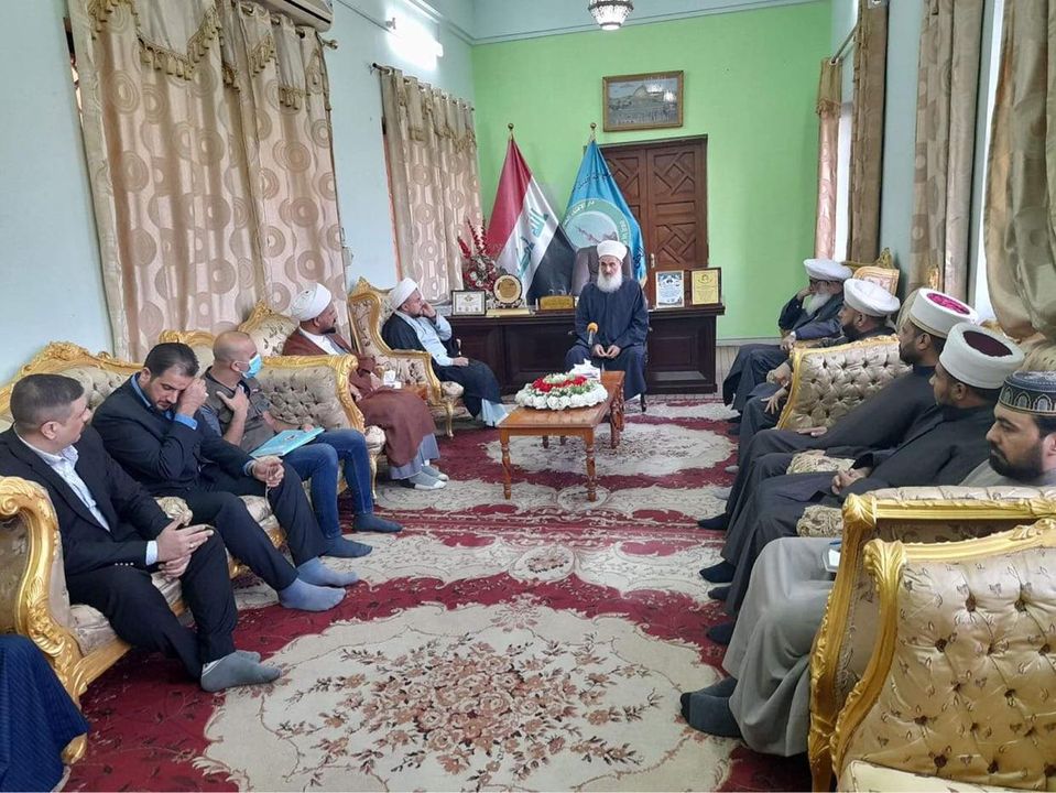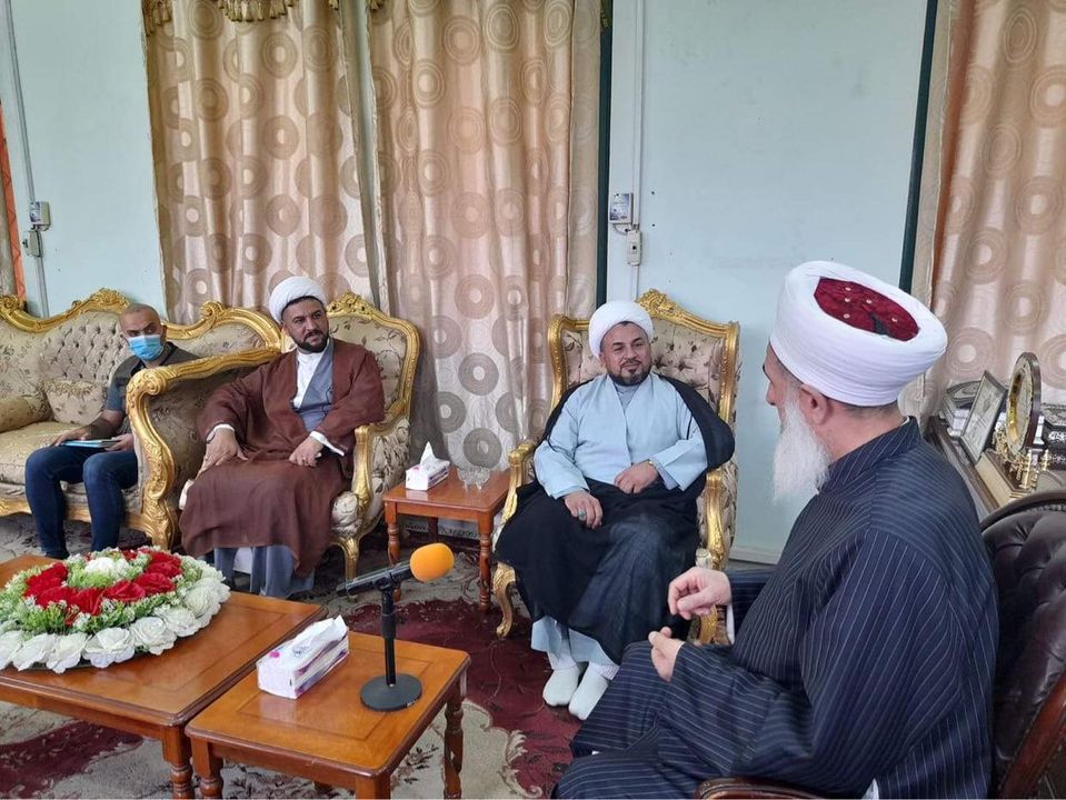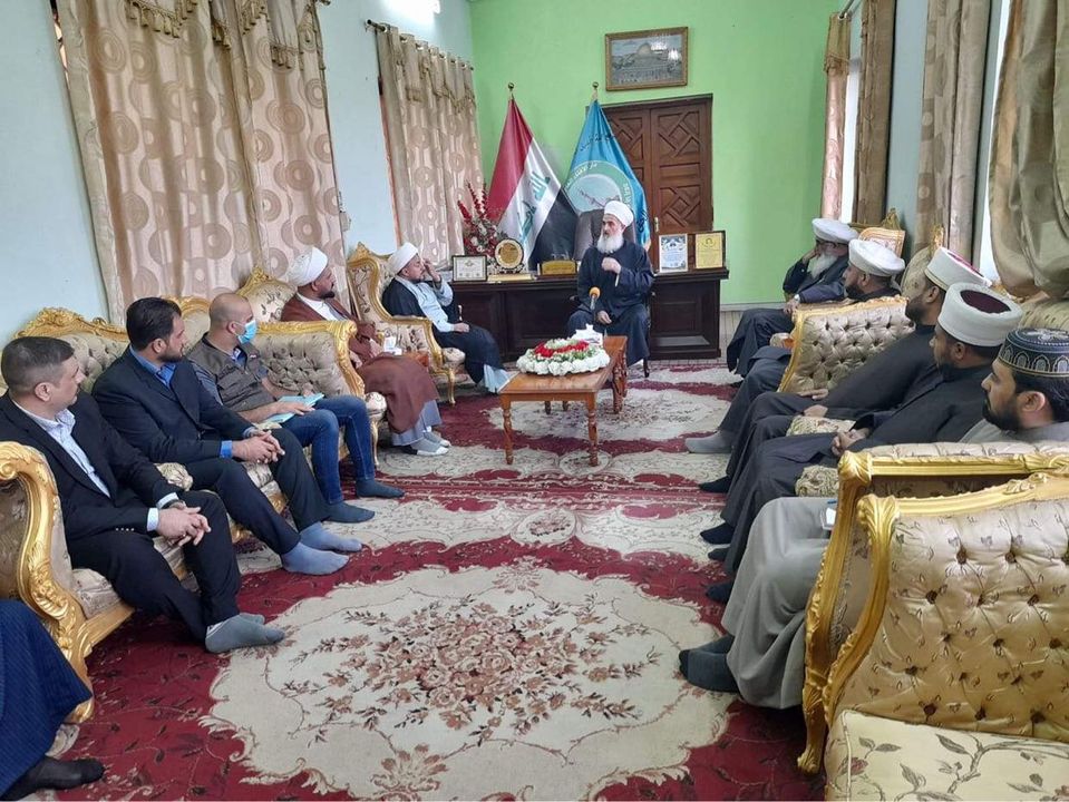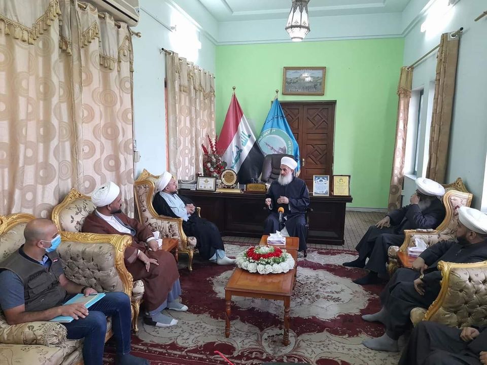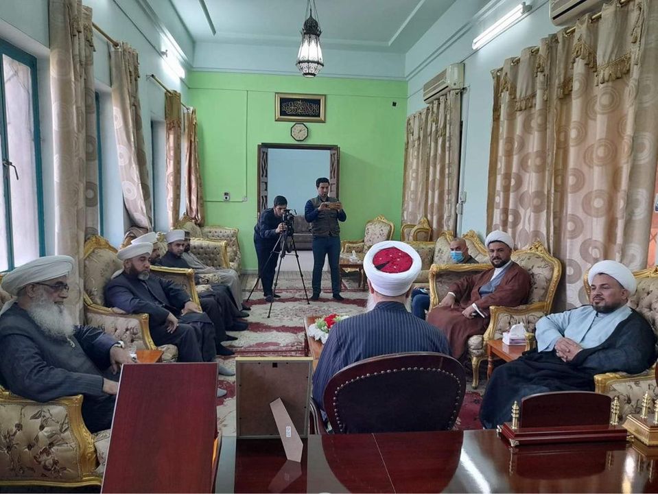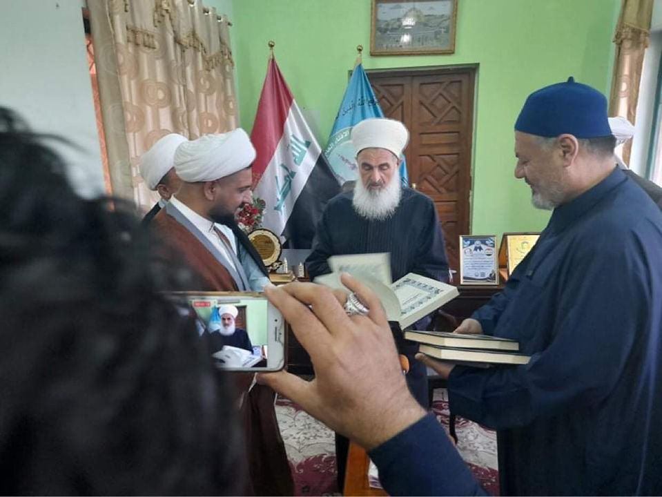 التقى سماحة مفتي جمهورية العراق الشيخ الدكتور مهدي بن احمد الصميدعي ” وفقه الله ” وفد تألف الوفد _ من الشيخ ضياء عبدالزهرة مدير شعبة الإرشاد الديني في وزارة الداخلية .. ومعاون مدير الارشاد ضياء الجبوري والسيد حسن داود العبيدي والشيخ خالد الهزيماوي والحاج حيدر الفيلي وكانت الزيارة للسلام على سماحة المفتي الجمهورية وفتح خط التعاون بين دعاة شعبة الارشاد الديني وزارة الداخلية وبين مكتب رعاية الأئمة والخطباء / دار الافتاء ، من جانبه رحب سماحته بهذه الفكرة التي تزيد من وعي شعبة الإرشاد وتجعل لهم مقبولية أكثر وخبرة من الدعاة في دار الافتاء … كما رحب سماحته بالضيوف محملا اياهم سلامه وتحياته الى جميع ابناء وزارة الداخلية سائلا الله لهم الحفظ والامان .