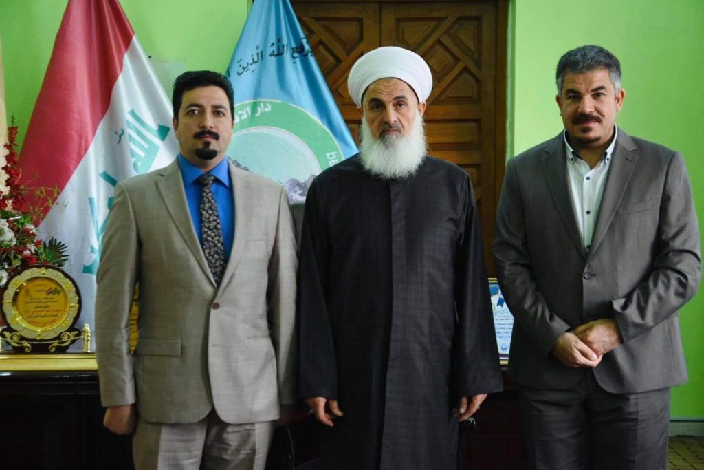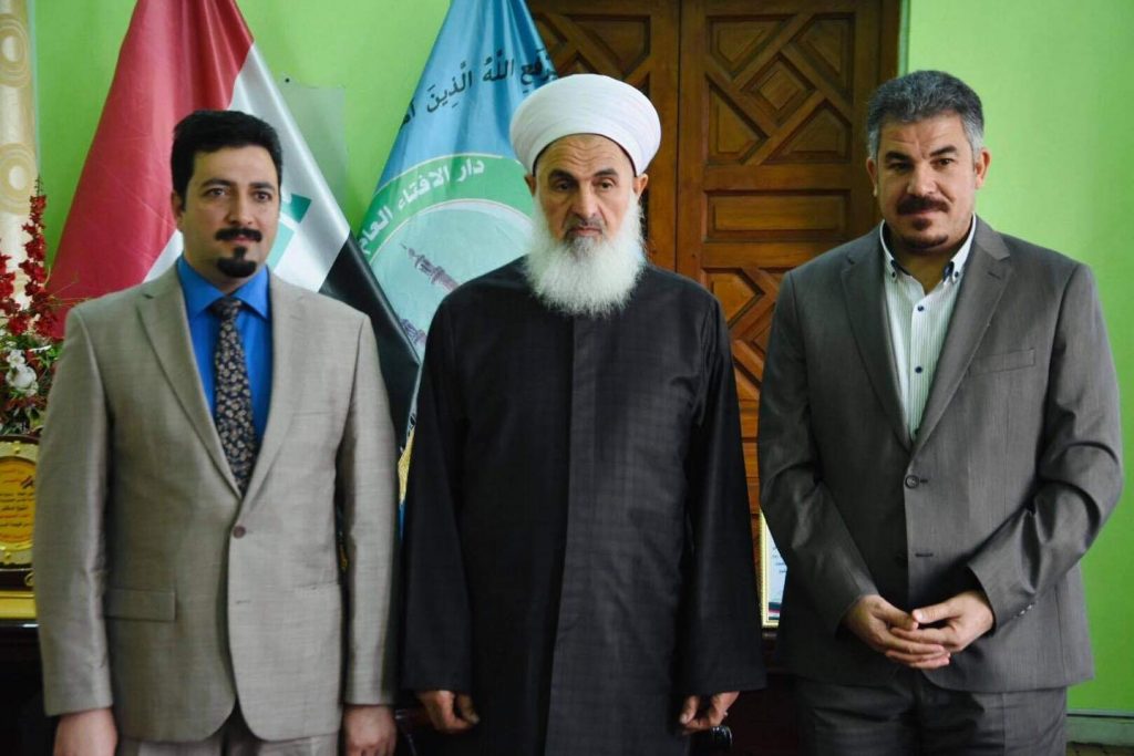 سماحة مفتي الجمهورية ” حفظه الله تعالى” وفد محافظة صلاح الدين. التقى سماحة مفتي جمهورية العراق الشيخ الدكتور مهدي بن احمد الصميدعي ” رعاه الله ” في مكتبه بدار الافتاء العراقية الدكتور حسام الحبوش من جامعة تكريت والشيخ مشتاق الجبوري من محافظة لاح الدين وكانت الزيارة للسلام على سماحة المفتي وشكرهم له على دعمه الكبير لابناء الشعب العراقي .