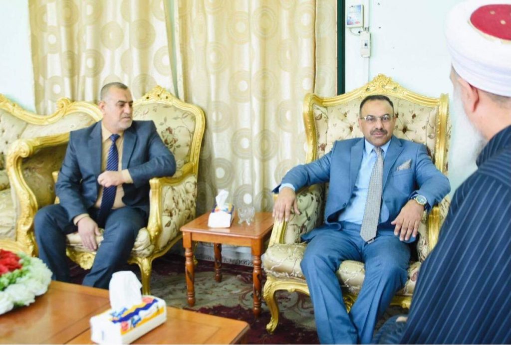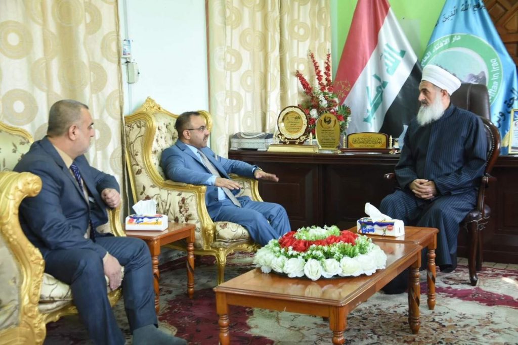 مفتي الجمهورية يلتقي بمكتبه مدير عام الدائرة القانونية / ديوان الوقف السني .التقى سماحة مفتي الجمهورية الدكتور مهدي بن احمد الصميدعي ( وفقه الله تعالى ) بمكتبه الدكتور أحمد مزبان العزاوي _ مدير عام الدائرة القانونية / ديوان الوقف السني … أكد جناب الدكتور أنه خصص أول زيارة له للعلماء والمراجع تكون لسماحة مفتي الجمهورية … عرض جناب مدير عام الدائرة القانونية مشروعه وبرنامجه في تنظيم وتنسيق الحقوق القانونية للأوقاف وكذلك استشارته لجميع العلماء والمراجع وخاصة صاحب السماحة الذي هو أكثر الناس حقا في موضوع المشورة والتعامل .. شكر سماحته رغبة السيد المدير العام مؤكدا التزامه ودعمه شريطة حفاظه على اموال وأملاك الأوقاف .