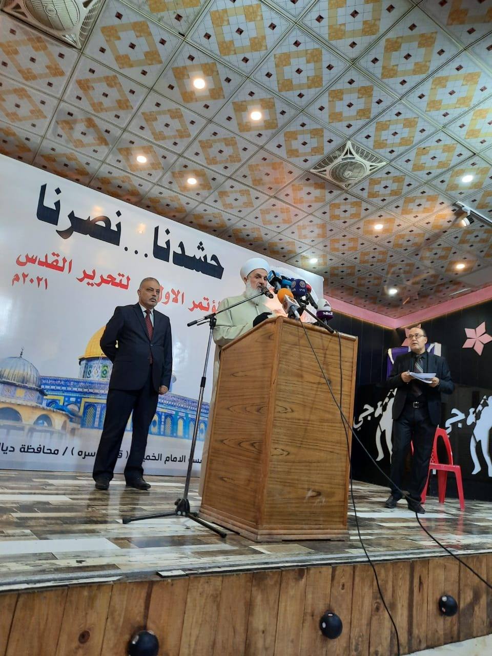 شارك سماحته مع وفد كبير من علماء ومشايخ دار الإفتاء العراقية والنشامى أبناء المقاومة الإسلامية / أحرار العراق ..أكد سماحته خلال كلمته التي ألقاها في المؤتمر على النقاط المهمة التالية :1. يجب أن نقدر ونحترم ونعترف بحق المقاومة وأبناء الحشد الذين كانت دمائهم خير شاهد لوقفتهم التأريخية مع العراق والحكومة .2. على رئيس الحكومة أو أي وزير في الحكومة أو عضواً في البرلمان أن يتذكر بأن هذا كلّه كان بفضل الله ثم بجهود وثبات ومثابرة أبناء المقاومة والحشد وأبناء القوات المسلحة.3. أطالب الحكومة وعلى رأسها السيد رئيس الوزراء عدم الإندفاع وراء مخابرات وإعلام الدول المعادية للعراق سواء كان في الداخل أم يغرد من الخارج .4. يجب على الجميع احترام عمامة وصف الرسول الأعظم صلى الله عليه وآله وسلم التي هكذا يسميها العراقيون وتبقى لها هيبتها واحترامها احتراما لنبي الرحمة صلى الله عليه وآله وصحبه وسلم ولآل بيته الأطهار وصحابته الأبرار .5. على جميع فصائل المقاومة التواضع وعدم التظاهر على الآخرين بجميع صنوفهم المدنية والعسكرية ويجب التواصل مع الحكومة وتشكيل لجان عاجلة وفورية لغلق فتحة الشر التي يحاول أعوان الاحتلال تكبير هوتها لتكون فساداً يدمر الحكومة أولا وثم المواطنين ولتكن الدروس من المحافظات الغربية كافية ورادعة لكل من يريد الانتصار بالمحتلين وهاهم السياسيون السنة الذين وقفوا ضد المقاومة بداية الاحتلال أين هم وكيف يعيشون وماهي سمعتهم عند أبناء السنة جميعا والله تعالى قال ( وَلَقَدْ أَرْسَلْنَا مُوسَىٰ بِآيَاتِنَا أَنْ أَخْرِجْ قَوْمَكَ مِنَ الظُّلُمَاتِ إِلَى النُّورِ وَذَكِّرْهُم بِأَيَّامِ اللَّهِ ۚ إِنَّ فِي ذَٰلِكَ لَآيَاتٍ لِّكُلِّ صَبَّارٍ شَكُورٍ (5) ابراهيم.
