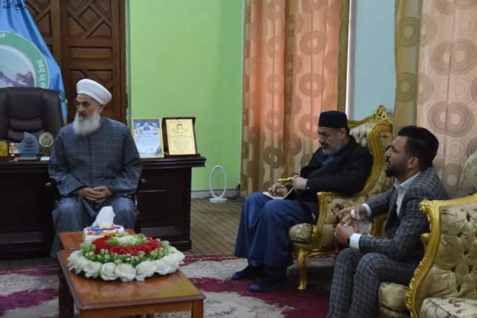 التقى سماحة مفتي جمهورية العراق الشيخ الدكتور مهدي بن احمد الصميدعي ” رعاه الله تعالى ” في مكتبه بدار الافتاء العراقية ، وفداً من قضاء الفلوجة _ السيد حميد الحلبوسي و والسيد فلاح حميد الحلبوسي و السيد خليل خميس المشهداني والسيد محمد زيدان القيسي والسيد رواد العلواني والسيد مصطفى عدنان العيساوي … كانت الزيارة للسلام على سماحة المفتي ” رعاه الله ” التواصل مع دار الافتاء وبيان رؤى مكتب العلاقات العامة دار الافتاء / فرع الفلوجة .