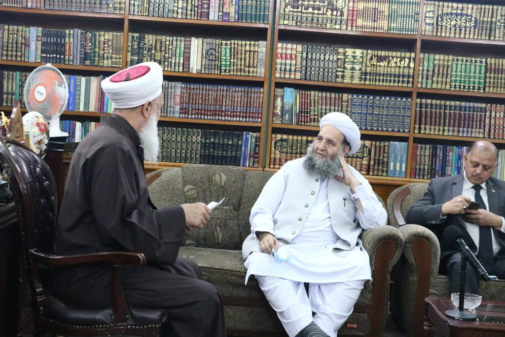 مفتي الجمهورية يستقبل السيد نور الحق القادري وزير الشؤون الدينية والوئام بين الاديان . في باكستان والقائم بالإعمال. الشيخ مزهر نصار شامي كانت الزيارة ضمن برنامج متفق عليه لزيارة العراق ولقاء مفتي الجمهورية والمرجعية العليا ، وزيارة ديوان الأوقاف … قدمت دار الافتاء مشروع للتعاون بين جمهورية العراق وبن جمهورية باكستان الاسلامية .