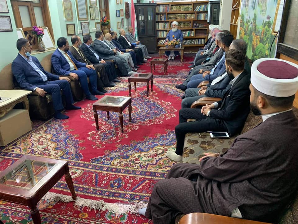 سماحة مفتي الجمهورية” وفقه الله ” يلتقي وفد حزب الايثار العراقي .التقى سماحة مفتي جمهورية العراق الشيخ الدكتور مهدي بن احمد الصميدعي ” حفظه الله تعالى ” في مكتبه بدار الافتاء العراقية وفد حزب الايثار برئاسة الشيخ احمد المشهداني الامين العام لحزب الايثار ، هذا واعلن الحزب عن مدى اهتمامه وانتمائه لتوجيهات سماحة المفتي لما يمتلك سماحته من رؤية واقعية عاصرت الازمات التي ادت الى هلاك المجتمع وما لسماحته من مواقف وارشادات تهدف الى لملمة النسيج الاجتماعي الذي حاول المخربون تفكيك أطر التعايش السلمي والمجتمعي بين ابناء البلد شاكرين الله على سلامة سماحته داعين الله له دوام الصحة والعافية .