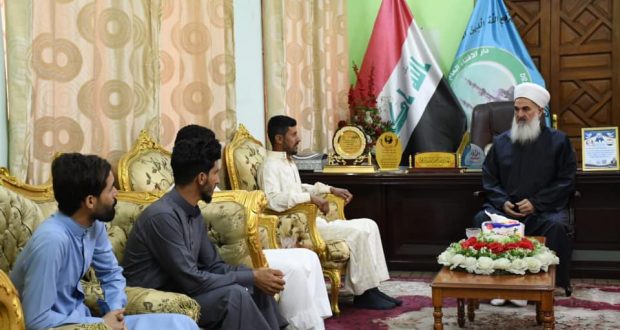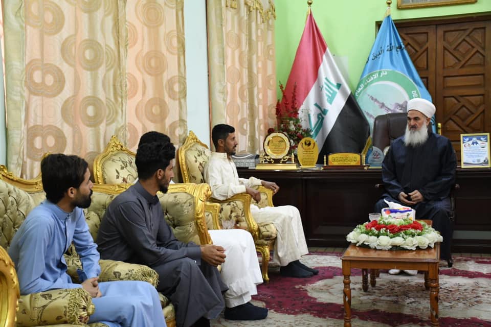التقى سماحة مفتي جمهورية العراق الشيخ الدكتور مهدي بن احمد الصميدعي ” رعاه الله تعالى ” في مكتبه بدار الافتاء العراقية وفد قضاء ابي غريب من طلاب العلم عبدالعزيز محمود والسيد احمد خالد حميد والسيد اوس نعمه احمد والسيد باسم جمهور خليل حيث ضمن الحملة الرمضانية التي تتبناها دار الافتاء بعنوان متن الأجر مية ضمانة من وقاية التطرف بمتابعة مكتب رعاية العلماء وإشراف واختبار مفتي الجمهورية .وهي بنس الوقت دعوة لجميع طلاب العلم ممن أخذوا شهادات علمية من المشايخ معتبرة أو من خريجي الكليات والمعاهد الشرعية أو ما يعادلها من الشهادات الأدبية.* يمنح المشترك شهادة علمية مصدقة بتوقيع وختم مفتي الجمهورية.* يكون للطالب الذي يجتاز الاختبار بدرجة جيد جدا… ممتاز كتاب تكليف بالامامة والخطابة ويكون ضمن قوائم دار الافتاء للمرشدين الدينيين في فريضة الحج والعمرة.* يحضى المجتازين بالاختبار عناية ورعاية دار الافتاء.أ. العناية الصحية.ب. منح الحصانة الشرعية من مكتب كبار العلماء..ج. المساعدة وتكليف المكتب القانوني في حالة وجود أي قضية في ظلم أو إشكالية…. عدى القضايا التي تخل بالآب والأخلاق أو التجاوز على حقوق المواطنين.