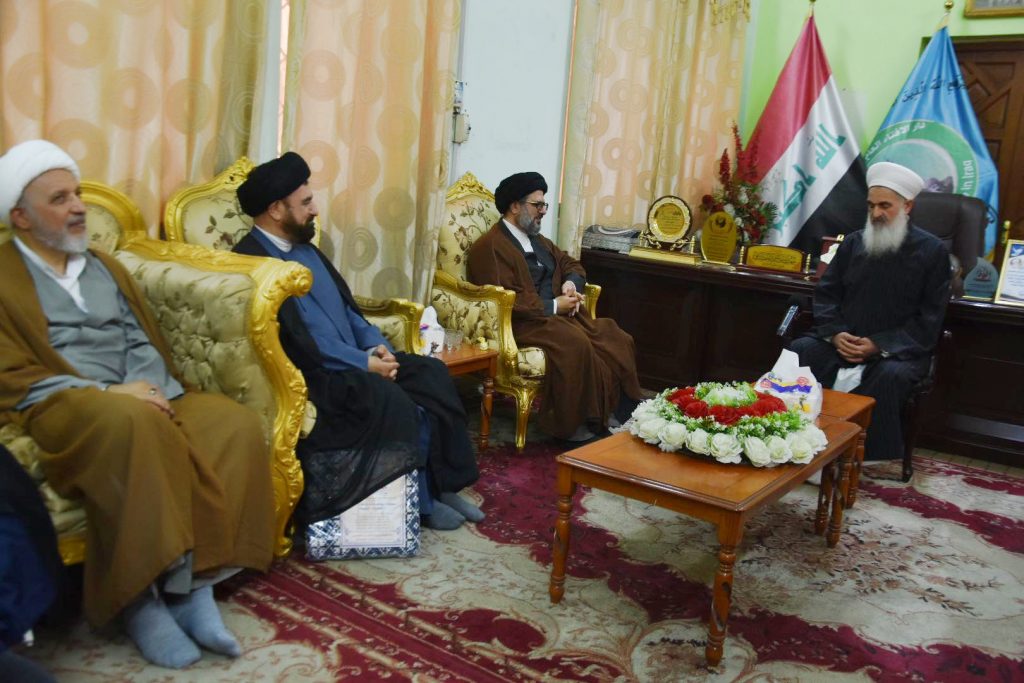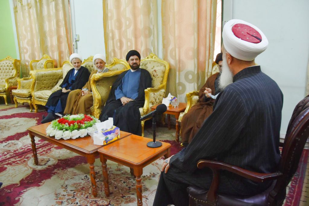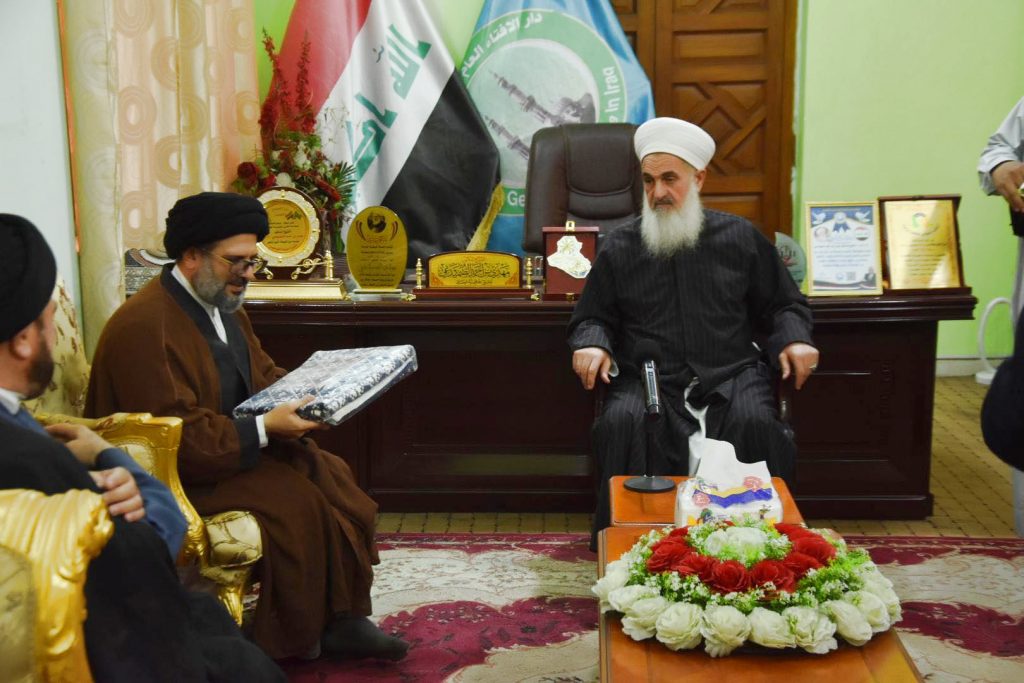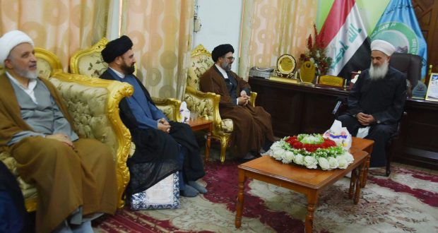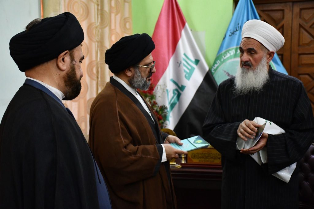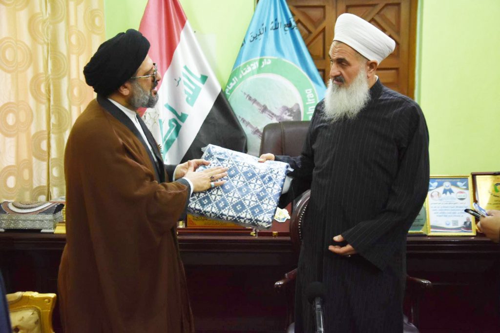 التقى سماحة مفتي جمهورية العراق الشيخ الدكتور مهدي بن احمد الصميدعي “رعاه الله تعالى ” في مكتب دار الافتاء العراقية صباح اليوم الاربعاء وفداً برئاسة الدكتور السيد مفيد الحسيني الكوهساري معاون مدير عام العلاقات والشؤون الدولية في الحوزات العلمية … تألف الوفد من السيد محمد ال ايوب والشيخ عقيل المصلي والشيخ جاسم الباوي مدير مكتب اليد مجتبى الحسيني وكانت الزيارة لتثمين دور سماحة المفتي وموقفه مع ابناء العراق في الوحدة ورفع الظلم …. مؤكدين دعمهم لسماحته بمشروعه القاضي الى لملمة جراح الشعب العراقي باصدار العفو العام … وتعديل المادة 57 سيئت الصيت والعواقب …قدّم الوفد هدية رمزية من سماحة الشيخ علي رضا أعرافي مدير عام معاونية العلاقات وشؤون الحوزات لسماحة مفتي الجمهورية …. تضامنا مع حديث النبي المصطفى صلى الله عليه وآله وسلم _ تهادوا تحابوا … حاملين معهم تحيات وسلام ممثليات الحوزات العلمية لسماحته _ داعين الله تعالى له الصحة والعافية والتوفيق … وان يجعله خيمة لجميع العراقيين ولأبناء المسلمين عموما .