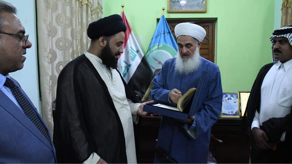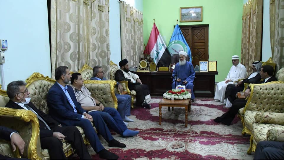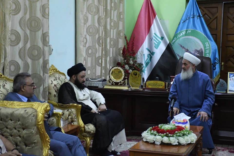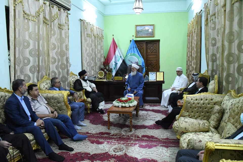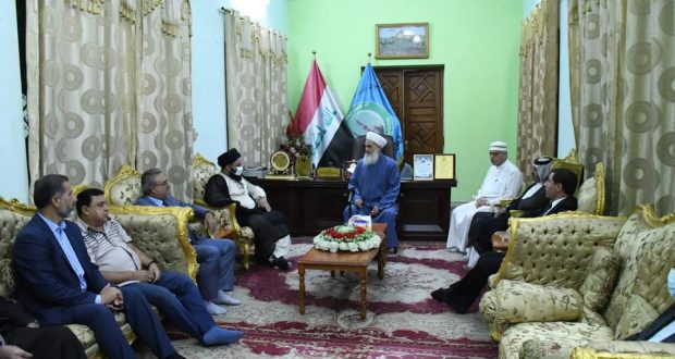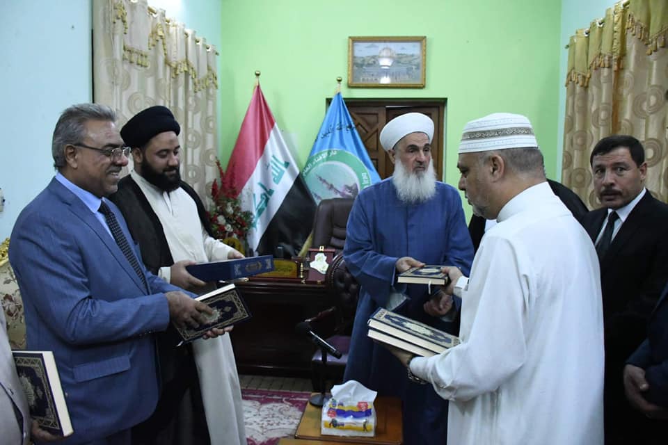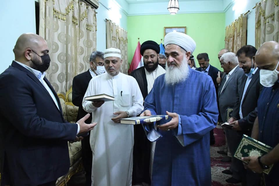 استقبل سماحة مفتي الجمهورية بمكتبه الخاص… وفدا من مكتب رئيس الوزراء.. برئاسة السيد حسين الحسيني والحاج احمد الدجيلي والحاج علي الحسيني والشيخ ابو وليد الخزعلي والعميد قاسم والسيد رواد العزاوي والسيد اياد العزاوي … وكانت زيارة تقديم التعزية لسماحته على وفاة السيد عدنان البندر الصميدعي رحمه الله. قدم الوفد شكرهم لسماحته على مواقفه الشجاعة والوطنية من اجل وحدة وأمان العراق . كما أكد الوفد أنهم مع الرأي الشعبي العام ومطلب سماحته … لأقرار العفو العام وتعديل المادة 57 .وفي نهاية اللقاء قدم سماحتة كتاب الله عزوجل كخطوة تدل على أن القرآن بينكم وبين العراقيين في تنفيذ مطالبهم.الأحد ١٨ شوال ١٤٤٢ هجرية ٣٠ آيار ٢٠٢١