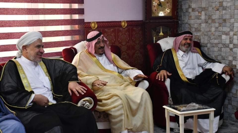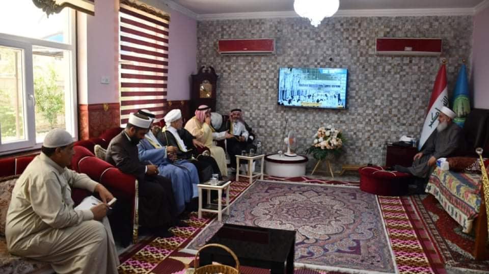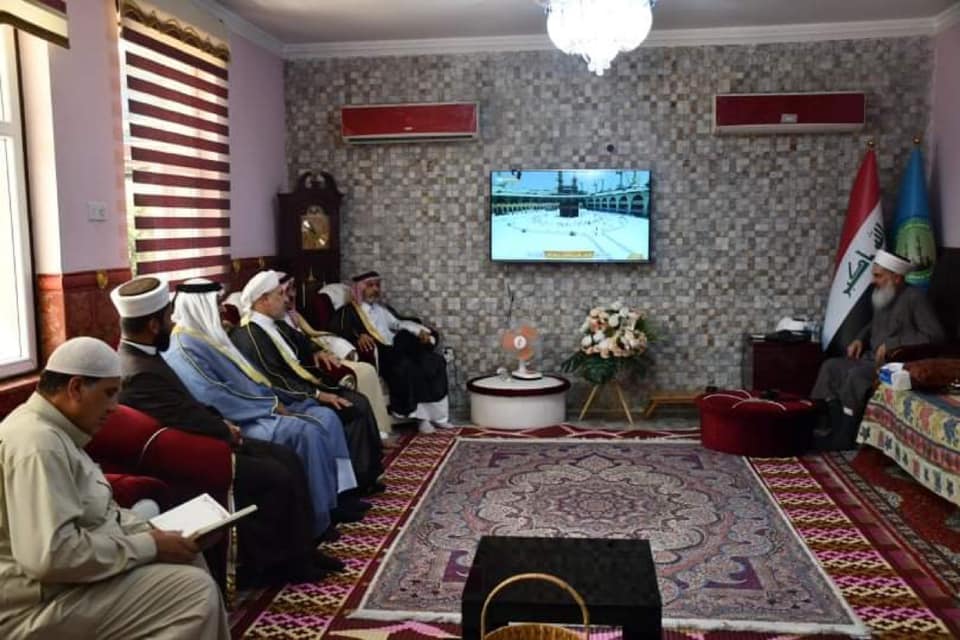 مفتي الجمهورية يستقبل وفدًا من قضاء الفلوجة وقضاء أبي غريب في منزله وسط العاصمة العراقية بغداد .