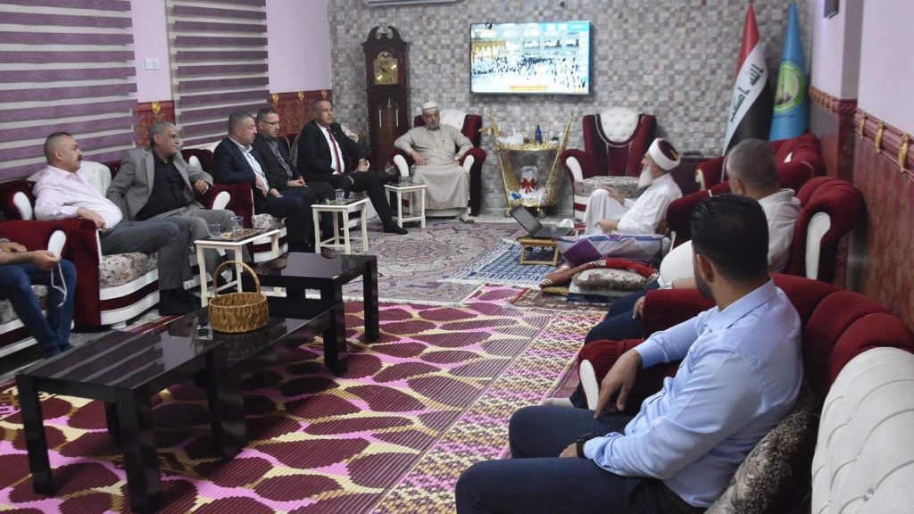 سماحة مفتي الجمهورية ” رعاه الله تعالى ” يلتقي وفد برئاسة العميد جاسم .التقى سماحة مفتي جمهورية العراق الشيخ الدكتور مهدي بن احمد الصميدعي ” رعاه الله تعالى ” في محل اقامته ببغداد وفد تألف من العميد جاسم والعقيد وسام الاوسي والمقدم حسام النعيمي والسيد حازم محمد خضير والسيد ليث الدليمي والسيد علي الدليمي والسيد نجم الجبوري والسيد سيف الفلوجي هذا وابدى الوفد تحياتهم وسلامهم لسماحة المفتي حاملين معهم مظلومية راجين من سماحته التدخل ومساعدتهم هذا وناقش سماحته مخرجات مظلوميتهم وأوعز إتخاذ ما يلزم بصدد ما جاءو به وفي الختام شكر الوفد سماحته على سماعهم داعين الله له الصحة والعافية .
