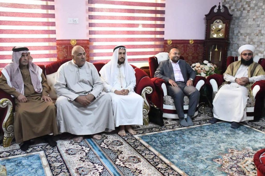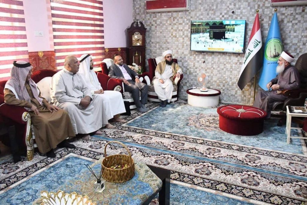 سماحة مفتي الجمهورية ” رعاه الله تعالى ” يلتقي وفد برئاسة امام وخطيب جامع السامرائي. التقى سماحة مفتي جمهورية العراق الشيخ الدكتور مهدي بن احمد الصميدعي ” رعاه الله تعالى ” في محل اقامته ببغداد صباح اليوم الخميس الشيخ حيدر التميمي امام وخطيب جامع السامرائي والوفد المرافق له تألف من السيد عمر ثامر عبد الله مدير اوقاف المدائن سابقاً والسيد خالد عبد المالك محمد والسيد نصيف جاسم محمد والسيد بدر رياض مؤذن جامع السامرائي وكانت الزيارة للتشاور والبحث مع سماحة المفتي ” رعاه الله ” في قضية جامع السامرائي وكيفية تقديم الية العمل لتخطي العقبات ، وفي الختام شكر الولد سماحته على سماعهم وابداء المساعدة ، داعين الله ان يحفظه للشعب العراقي وجعله خيمة يحتمي بها ابناء الوطن .
