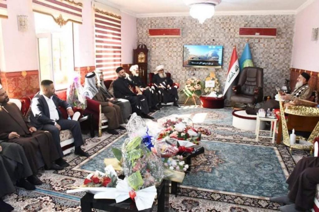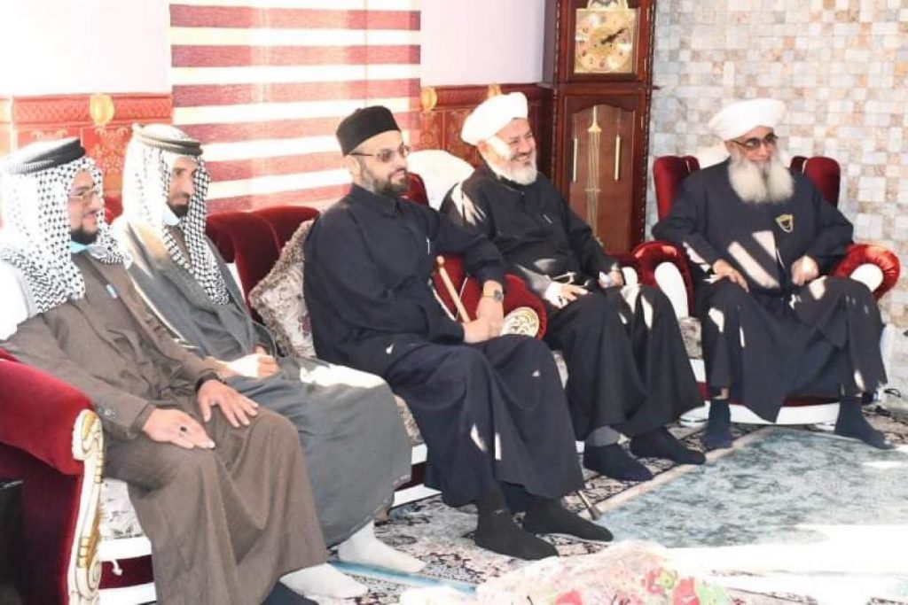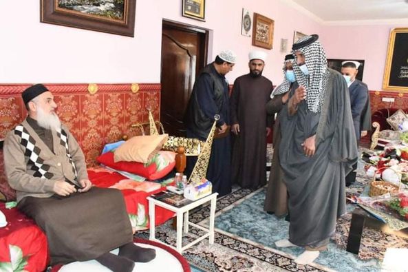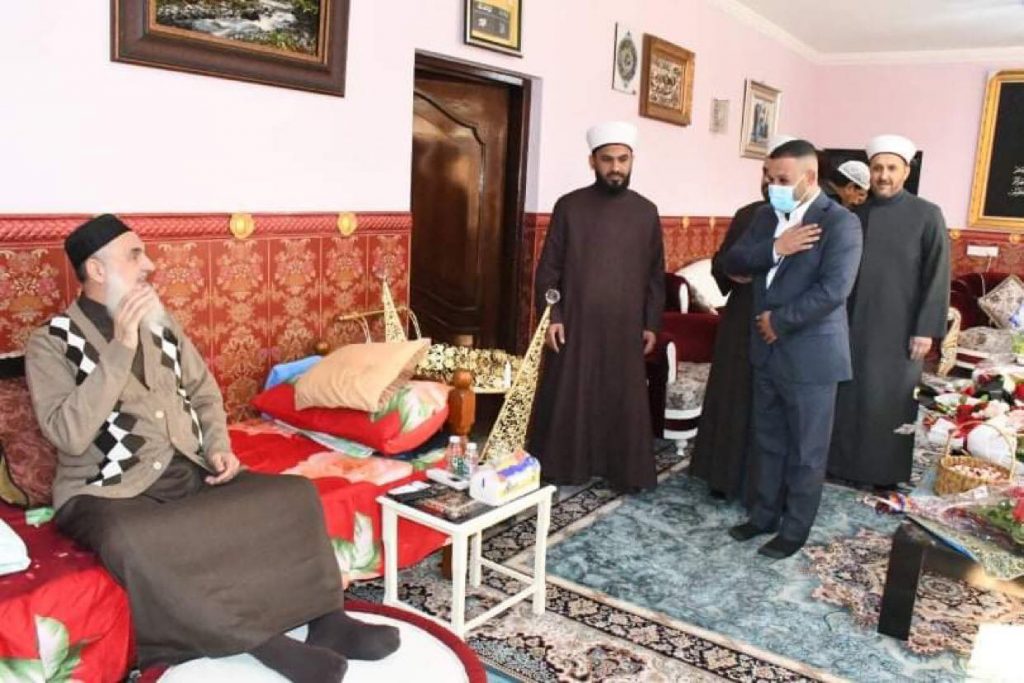 التقى سماحة مفتي جمهورية العراق الشيخ الدكتور مهدي بن احمد الصميدعي “رعاه الله تعالى” في محل اقامته ببغداد مساء اليوم الاحد وفد الشيخ وسام عبد الله الدليمي والشيخ موفق حسن علوان امام وخطيب جامع الايمان في منطقة السيافية جنوب العاصمة العراقية بغداد والشيخ مروان العبيدي مدير تجمع التصوف الاعلى والشيخ ماهر الجنابي ، وكانت الزيارة للاطمئنان على صحة سماحة المفتي “رعاه الله تعالى” بعد خروجه من المشفى واجراءه عملية جراحية، سائلين الله تعالى ان يلبسه ثوب الصحة والعافية.