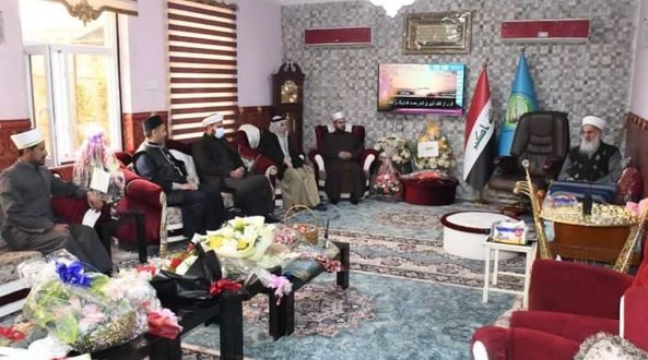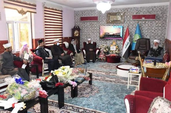 التقى سماحة مفتي جمهورية العراق ” رعاه الله تعالى ” الشيخ الدكتور مهدي بن احمد الصميدعي في محل اقامته ببغداد صباح اليوم الاثنين وفد محافظة نينوى برئاسة السيد وليد جبر الشدة رئيس مركز الهاشمي لانساب آل البيت والشيخ احمد ادريس فاضل امام وخطيب والوفد المرافق ، وكانت الزيارة للسلام على سماحة المفتي والاطمئنان على صحته بعد اجراءه عملية جراحية تكللت بفضل الله تعالى بالنجاح شاكرين سماحته على حسن الاستقبال داعين الله دوام الصحة والعافية .