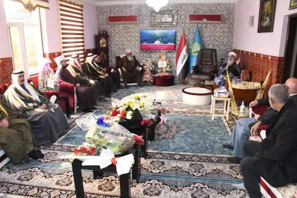 التقى سماحة مفتي جمهورية العراق ” رعاه الله تعالى ” الشيخ الدكتور مهدي بن احمد الصميدعي في محل اقامته ببغداد صباح اليوم الاثنين وفد محافظة الانبار تألف من الشيخ جاسم محمد الخليفاوي رئيس مجلس عشائر قضاء الحبانية والشيخ صباح محمد علي والشيخ عبد اللطيف جاسم حمادي الحلبوسي والشيخ مشكور عبد الله حمد الحلبوسي والشيخ مجيد الجريصي، وكانت الزيارة للسلام على سماحة المفتي والاطمئنان على صحته بعد اجراءه عملية جراحية تكللت بفضل الله تعالى بالنجاح شاكرين سماحته على حسن الاستقبال داعين الله دوام الصحة والعافية .