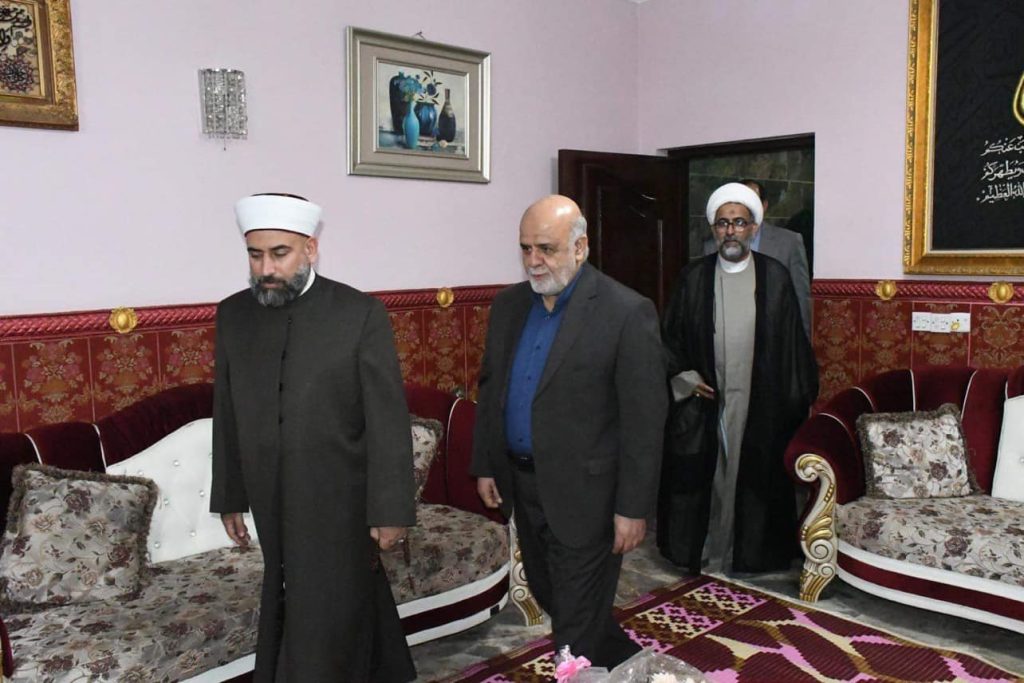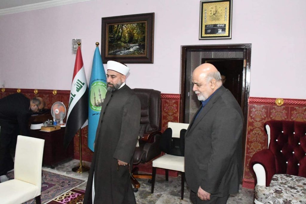 سماحة مفتي الجمهورية” حفظه الله تعالى ” في محل اقامته ببغداد مساء اليوم الاثنين وفد من الجمهورية الاسلامية سعادة السفير ايرج مسجدي والشيخ أبا ذر ممثل، الثقافية في سفارة الجمهورية الاسلامية… كانت الزيارة السلام على سماحة المفتي والإطمئنان على صحته داعين الله تعالى له بالشفاء والسلامة والتوفيق… من جانبه شكر سماحته الوفد داعيا الله في هذا الشهر الفضيل، لهم صياما مقبولا وعملا صالحا متقبلا وأن يحفظهم الله تعالى وعوائلهم الكريمة.