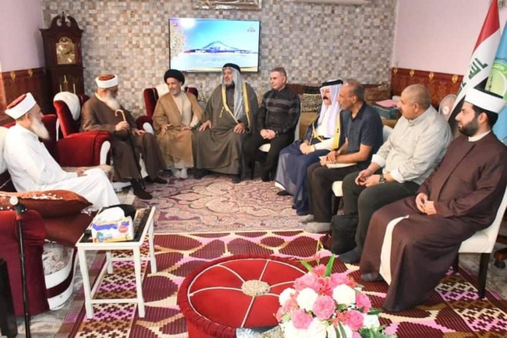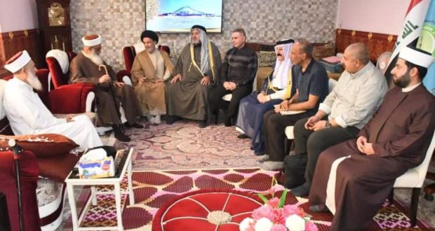 سماحة مفتي جمهورية العراق ” رعاه الله تعالى ” يلتقي وفد السيد الدكتور صادق هاشم الموسوي .. التقى سماحة مفتي جمهورية العراق ” رعاه الله تعالى ” في محل اقامته ببغداد صباح يوم الثلاثاء وفد برئاسة السيد الدكتور صادق هاشم الموسوي والاستاذ جامعي في جامعة المشرق والسيد محمد معن حسن والشيخ خالد الهزيماوي / مستشار حركة المقاومة الاسلامية احرار العراق في الانبار والسيد عماد خليفة سلمان والسيد خليل ابراهيم احمد…. وكانت الزيارة للاطمئنان على صحته داعين الله تعالى له بالشفاء والسلامة والتوفيق كما وناقش سماحته معهم اخر المستجدات وما يخص مكتب دار الافتاء في القضاء ، وفي الختام شكر سماحته الوفد سائلا الله وأن يحفظكم وعوائلهم.