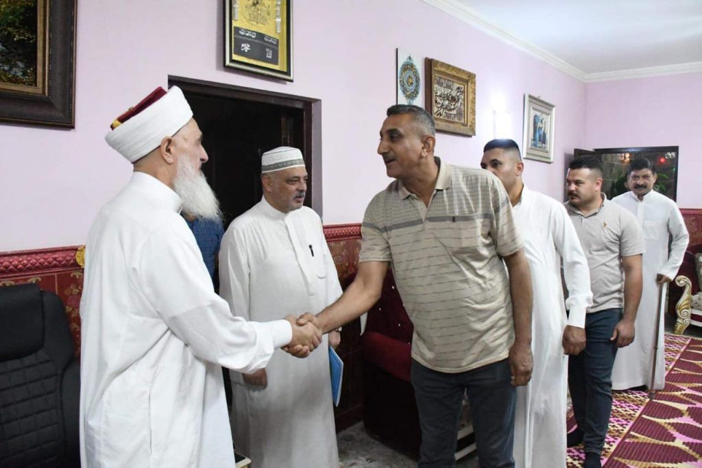 استقبل سماحة مفتي جمهورية العراق في محل اقامته ببغداد مساء اليوم السبت وفد عشيرة البوعلوان تألف الوفد من الشيخ حسين علي والشيخ انور اسعد والشيخ سليمان والسيد مروان والسيد صدام والشيخ محمد لطوفي والشيخ ثامر والسيد سعد…. كانت الزيارة السلام والاطمئنان على صحة سماحة المفتي بعد عودته من سفرة العلاج… شكر سماحته الوفد الكريم داعيا الله تعالى أن يدفع عنهم وعن عوائلهم كل سوء ومكروه…