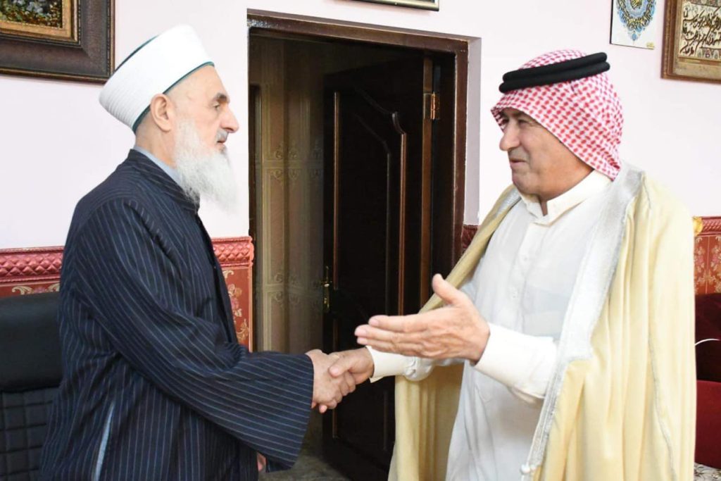 استقبل سماحة مفتي جمهورية العراق في محل اقامته ببغداد صباح اليوم الاربعاء وفد برئاسة الشيخ جمال خضير عبد الواحد الدراجي وتألف الوفد من الشيخ غانم الدراجي والسيد خالد الدراجي من منطقة الدور.. كانت الزيارة السلام والاطمئنان على صحة سماحة المفتي بعد عودته من سفرة العلاج… شكر سماحته الوفد الكريم … داعيا الله تعالى أن يدفع عنهم وعن عوائلهم كل سوء ومكروه…