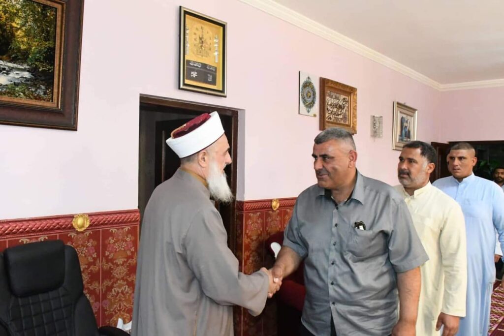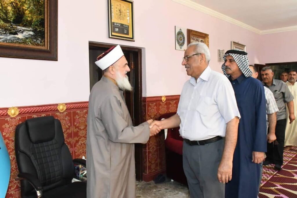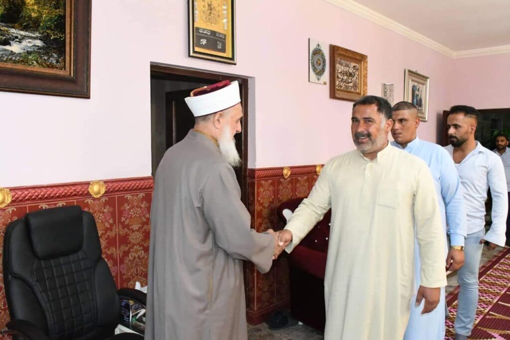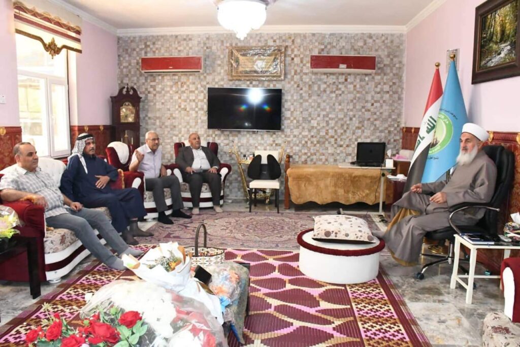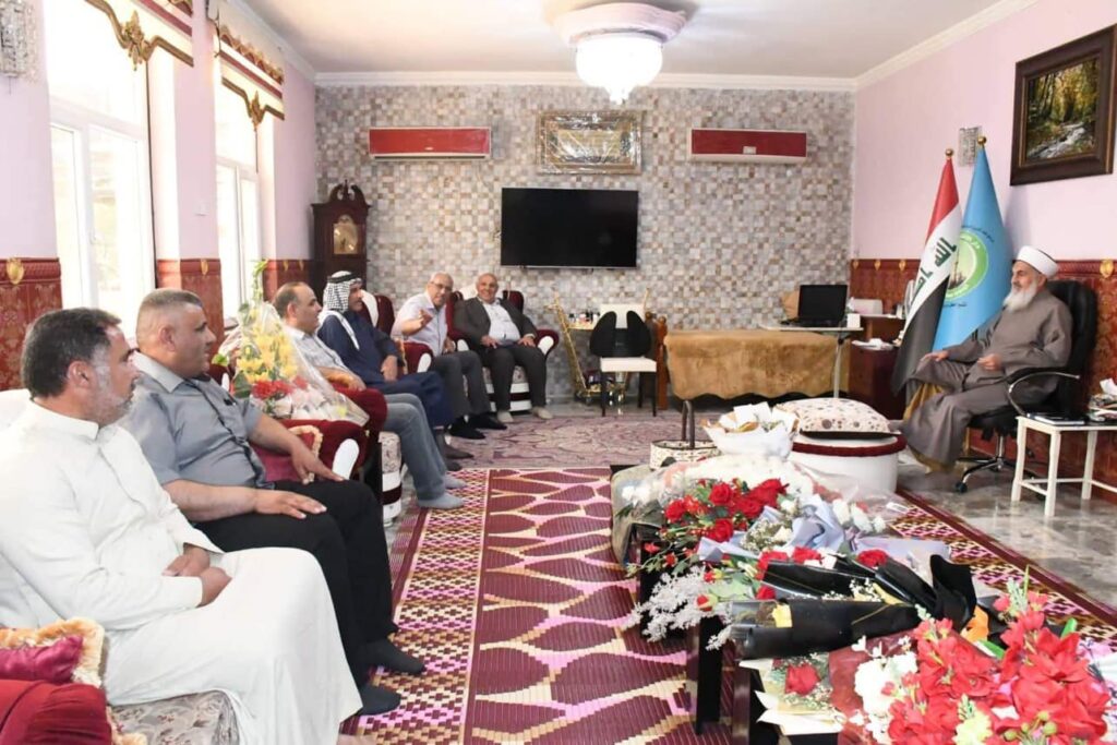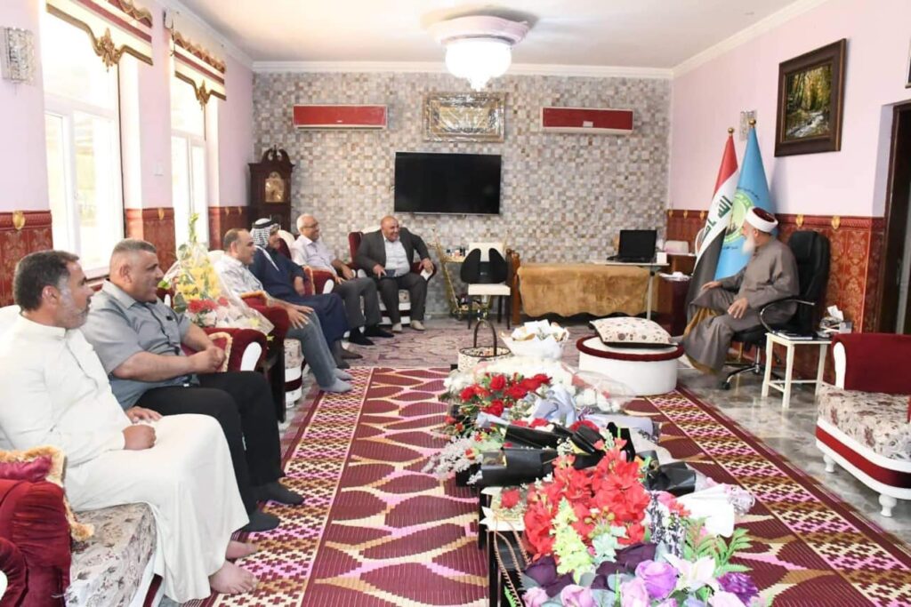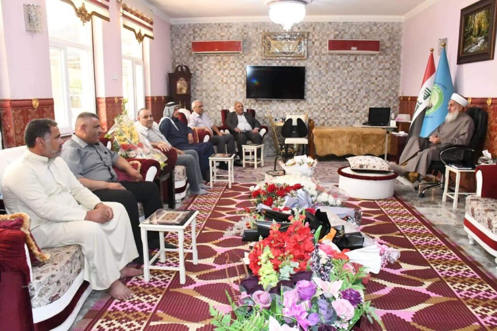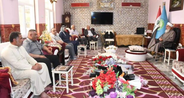 استقبل سماحة مفتي الجمهورية الشيخ الدكتور مهدي الصميدعي * رعاه الله * صباح اليوم الاحد وفد محافظة ديالى / ناحية السعدية من السادة الصميدع برئاسة السيد محمد ظاهر محمد الصميدعي/شيخ فخذ البو ظاهر والسيد محمود ظاهر محمد والسيد حميد حسين محمد والسيد حسين علي ذياب والسيد باسم احمد خلف والسيد نزار علي والسيد ايمن جدوع والسيد علي غيدان حيث الزيارة لتهنئة سماحة المفتي ” وفقه الله تعالى ” بمناسبة عيد الاضحى المبارك سائلين الله لسماحته الصحة والسلامة ، من جهته شكر سماحته الوفد على سعيه الكريم داعيا الله له التوفيق وان يجعله عيد يمن وبركة على جميع المسلمين .