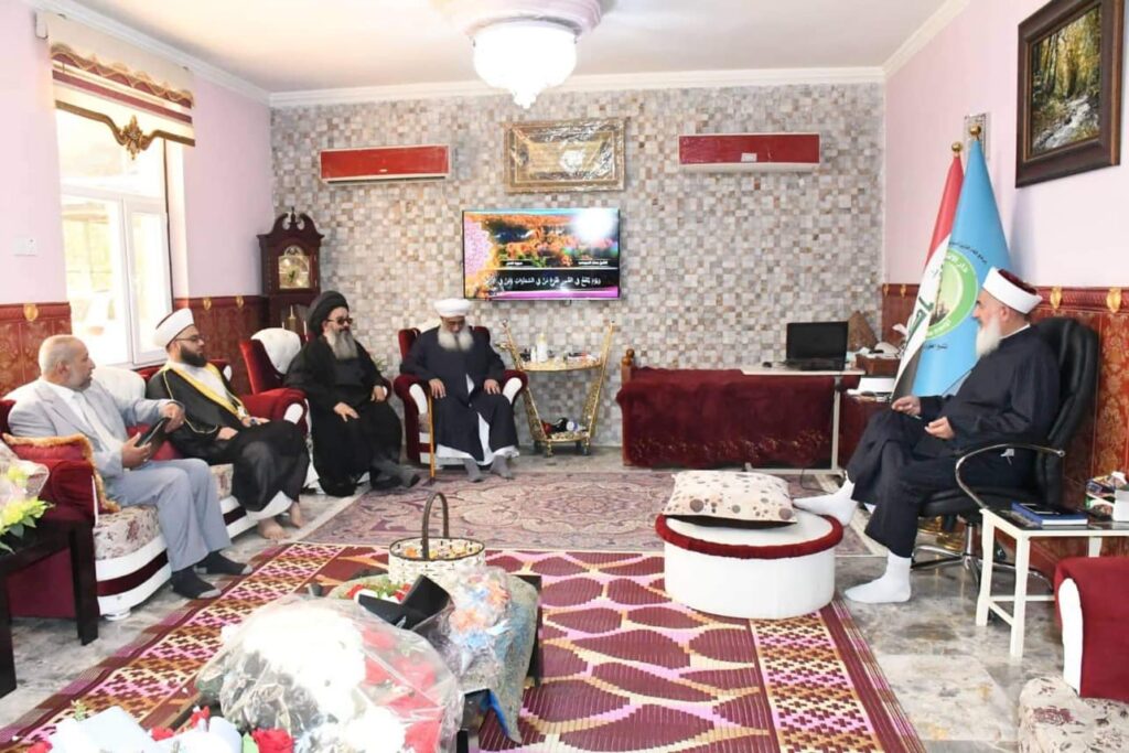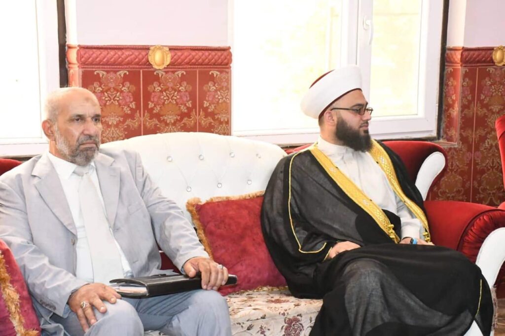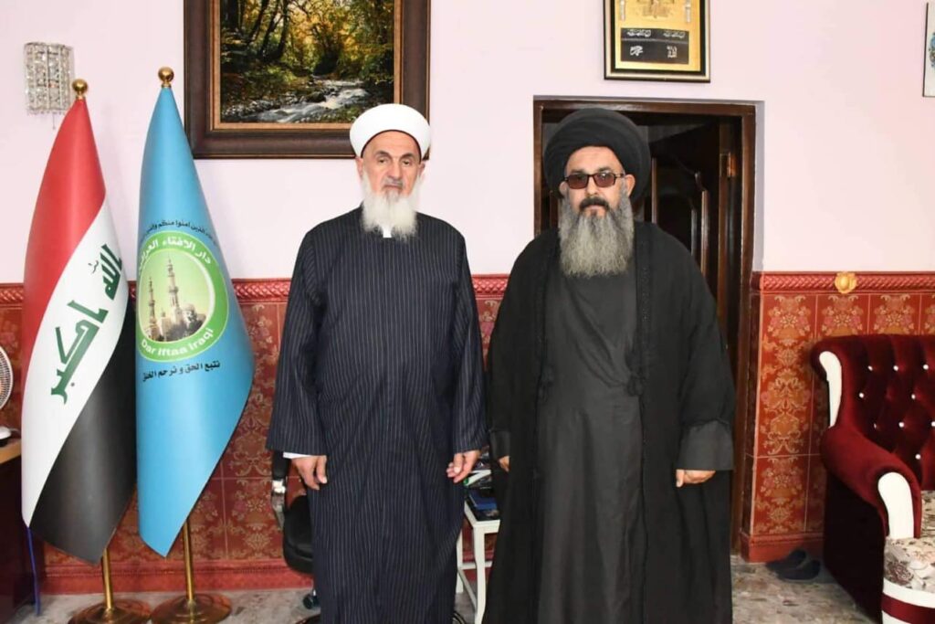 التقى سماحة مفتي الجمهورية الشيخ الدكتور مهدي بن احمد الصميدعي ” رعاه الله تعالى ” صباح اليوم الاربعاء وفد تألف من الشيخ حيدر التميمي امام وخطيب جامع السامرائي في منطقة بغداد الجديدة و عضو دار الافتاء العراقية وحجة الاسلام والمسلمين السيد محمد الموسوي والدكتور عبد الرزاق الصميدعي/ مكتب حقوق الانسان والشيخ خالد ناصر امام جامع فالح باشا في محافظة الناصرية وكانت الزيارة للتواصل مع دار الافتاء ومناقشة اهم المشاكل التي تتعلق بالمساجد وسبل وكيفية تجاوزها ولاستمرار بنشر الاخوة وعدم السماح للمقرضين والمخربين بتمرير مشروعهم الخبيث ، وفي الختام شكر سماحة الوفد محملا اياهم سلامه وتحياته لعوائلهم الكريمة .