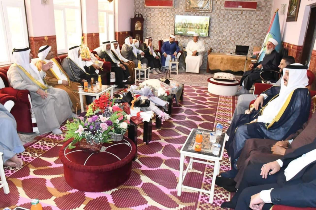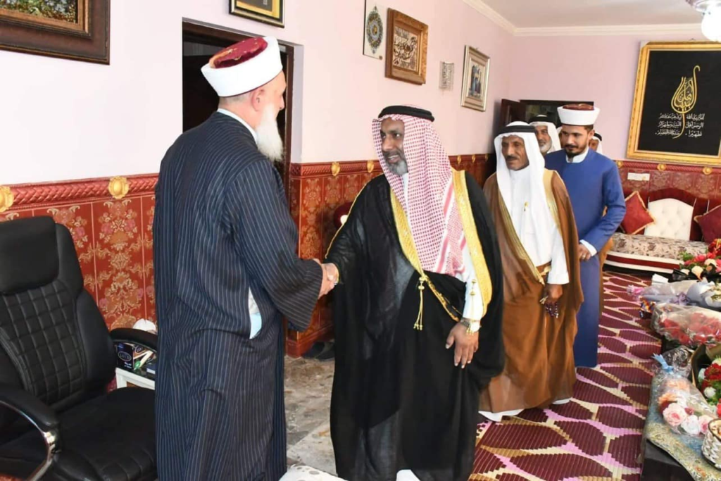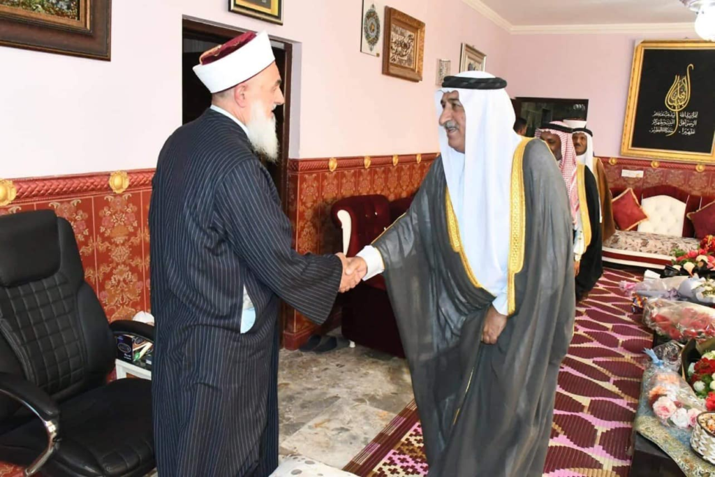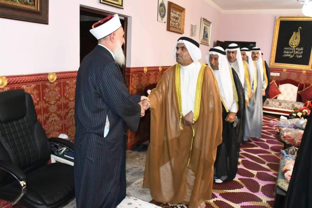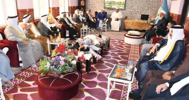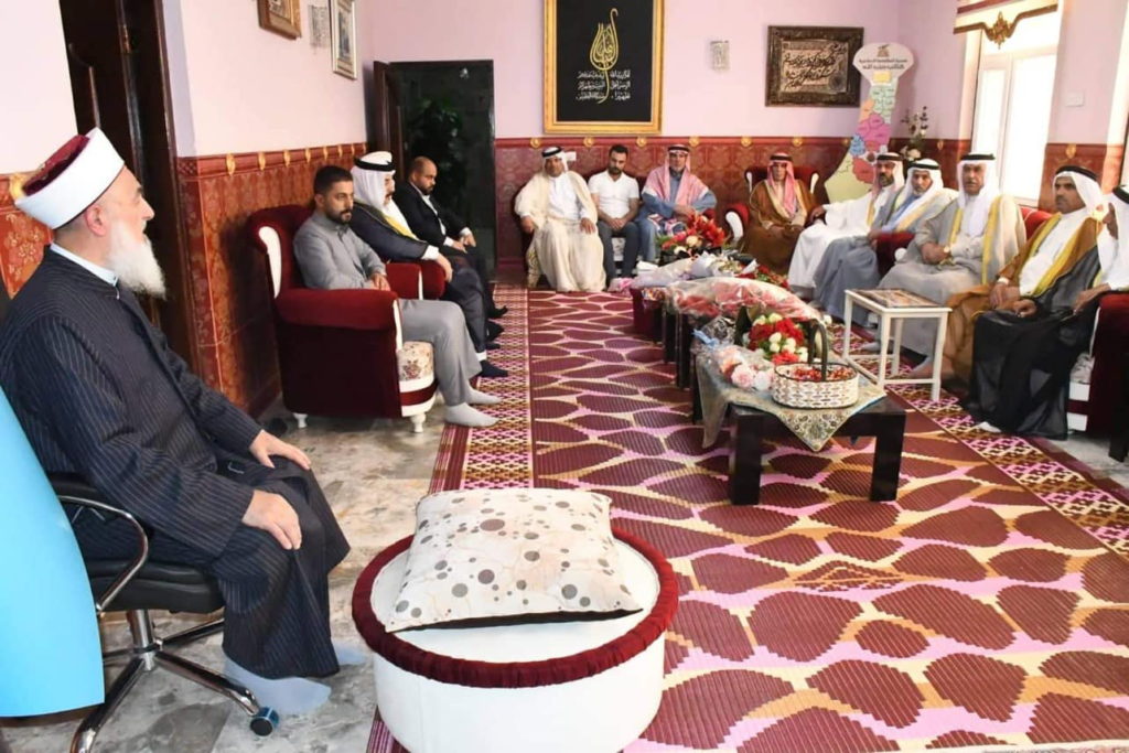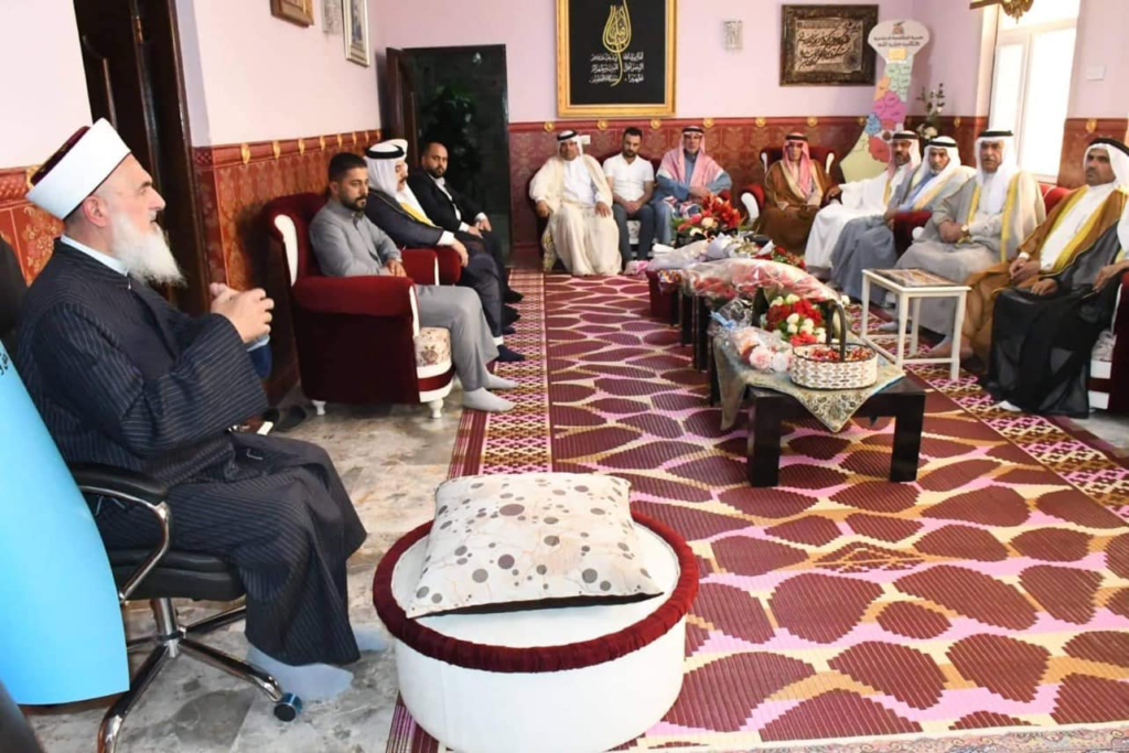 استقبل سماحة مفتي الجمهورية ” رعاه الله تعالى ” في محل اقامته بغداد صباح اليوم الاثنين وفد شيوخ ووجهاء قضاء ابي غريب برئاسة الشيخ اكرم الفلوجي / مدير مكتب دار الافتاء العراقية في القضاء وتألف الوفد من الشيخ شاكر محمود المحسن الفلوجي والشيخ قاسم عناد الخزرجي واسعد محمد اسماعيل الخزرجي والسيد حسين محمد حسين المعموري والاستاذ عمر جاسم محمد والشيخ سعد هلال سعيد والشيخ شامل محمد والسيد هادي عبد يوسف الفلوجي…. وكانت الزيارة لتهنئة سماحة المفتي بعيد الأضحى المبارك وكما وشكر الوفد جهود سماحة المفتي حفظه الله ومتابعته المباشرة لقاء ابي غريب داعين الله تعالى ان من عليه بالصحة والعافية ، من جانبه شكر سماحته الوفد على سعيهم في احياء سنة التزاور داعيا الله لهم التوفيق والسداد وقبول الطاعات وان يعم الامن والسلام في سائر بلاد المسلمين .