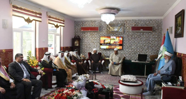التقى سماحة مفتي الجمهورية الشيخ الدكتور مهدي بن احمد الصميدعي ” رعاه الله تعالى ” صباح اليوم الاثنين وفد برئاسة الشيخ اكرم الفلوجي مدير دار الافتاء في ابو غريب وتألف الوفد من الشيخ حميد العرسان مكتب العشائر والشيخ حماد مشكور الزوبعي مكتب العلاقات والشيخ نعمة القيسي مكتب العلاقات والشيخ نجم عمران اللهيبي عضو والشيخ جمعه علي عضو وكانت الزيارة للتواصل مع دار الافتاء والاطمئنان على صحة وسلامة سماحة المفتي شاكرين سماحته على دعمه ومتابعته الشخصية لقضاء ابي غريب كما وبحثوا مع سماحته اخر التطورات وكيفية الارتقاء بالواقع الخدمي وتغليب مصلحة المواطن في القضاء ذاته ، وفي الختام شكر سماحته الوفد محملا اياهم سلامه وتحياته لعوائلهم الكريمة.