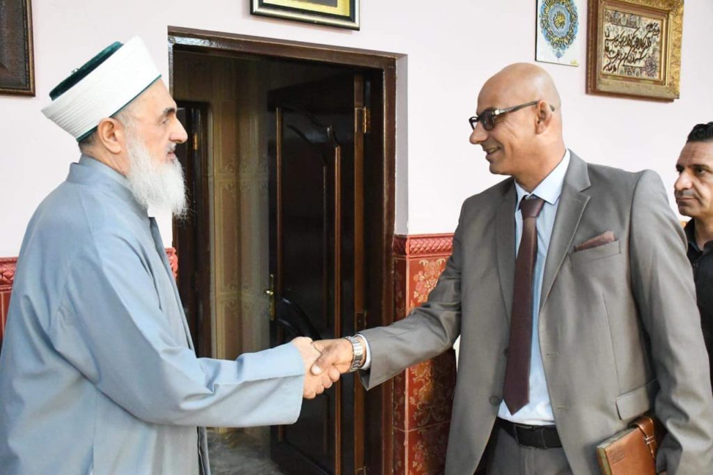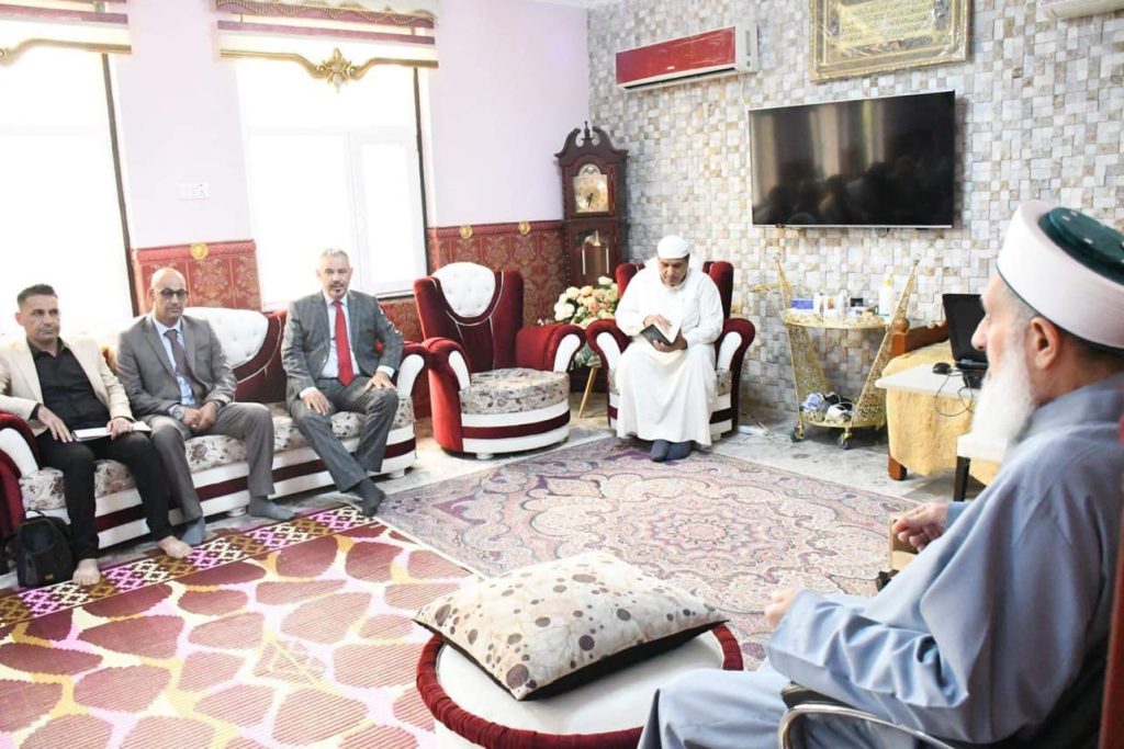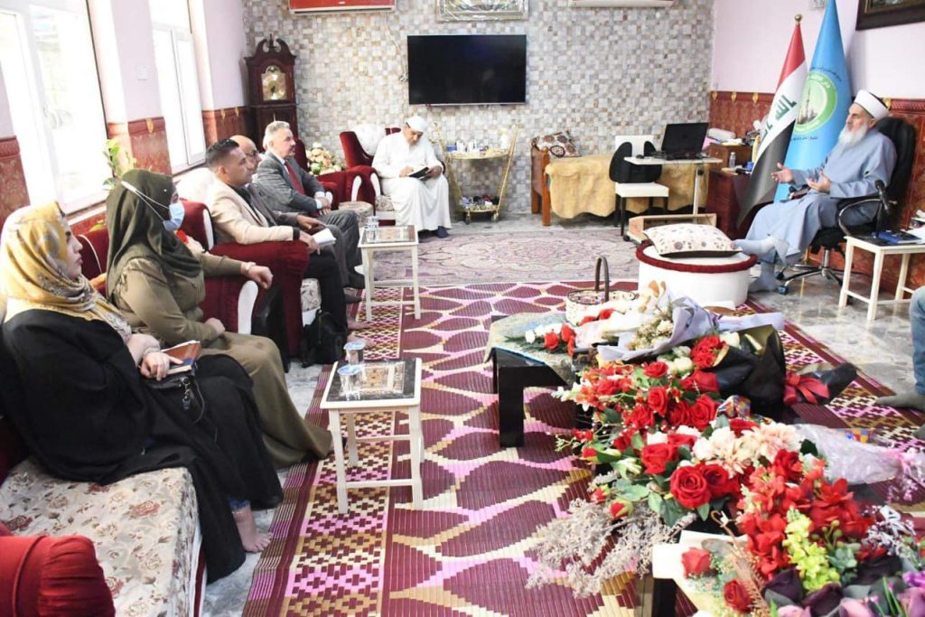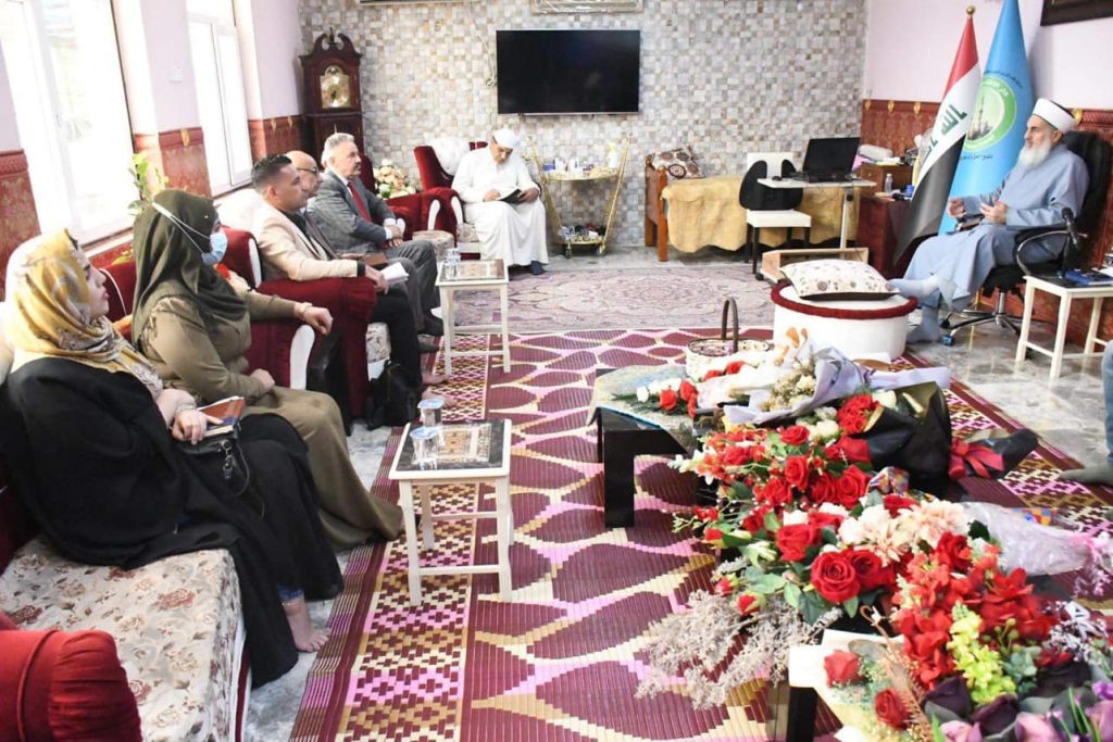 التقى سماحة مفتي جمهورية العراق الشيخ الدكتور مهدي بن احمد الصميدعي ” رعاه الله تعالى ” في محل اقامته ببغداد صباح اليوم الاربعاء وفد وكالة العراقية الان برئاسة مديرها الاستاذ صفاء الطيب ونائبه الست نادية الحسيني والوفد المرافق لهما ، كانت الزيارة لدعم مواقف سماحة المفتي خلال وقوفه الشجاع مع وحدة العراق ولم شمل الصف الوطني العراقي ومحاربة دعاة الفتنة والطائفية ، موضحين مدى سعادتهم بلقائه المبارك شاكرين الله ان هيئ لهم اسباب الزيارة كما وابدى الوفد تعاونه التام مع دار الافتاء العراقية ونصرة مشروعها الواضح الداعي الى نشر الوحدة والاخوة بين أبناء البلد الواحد .