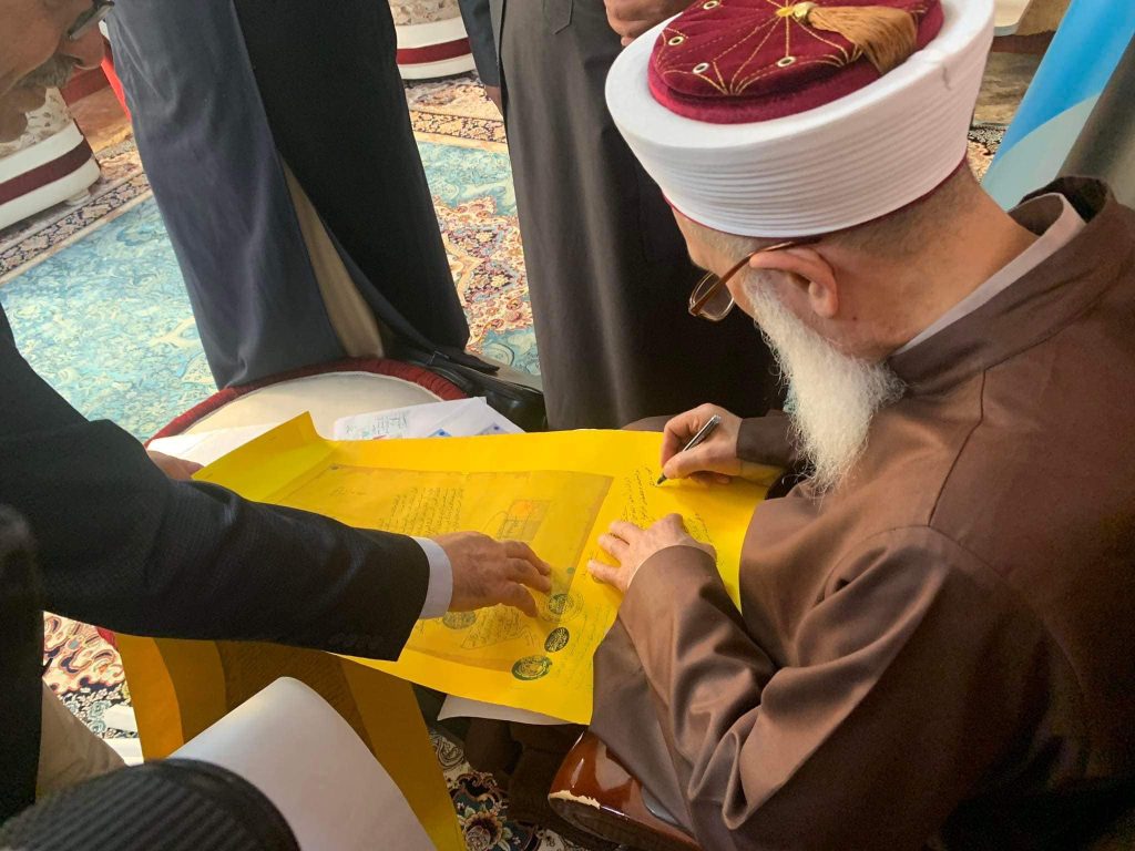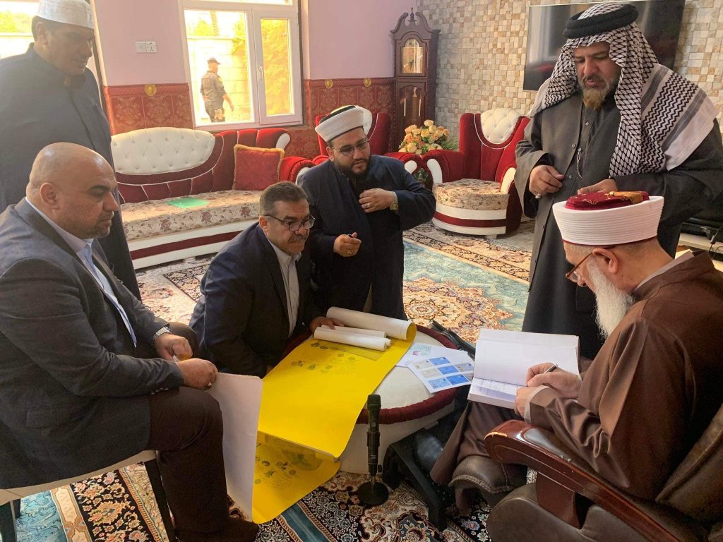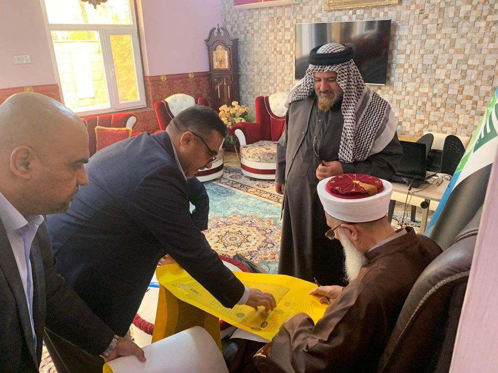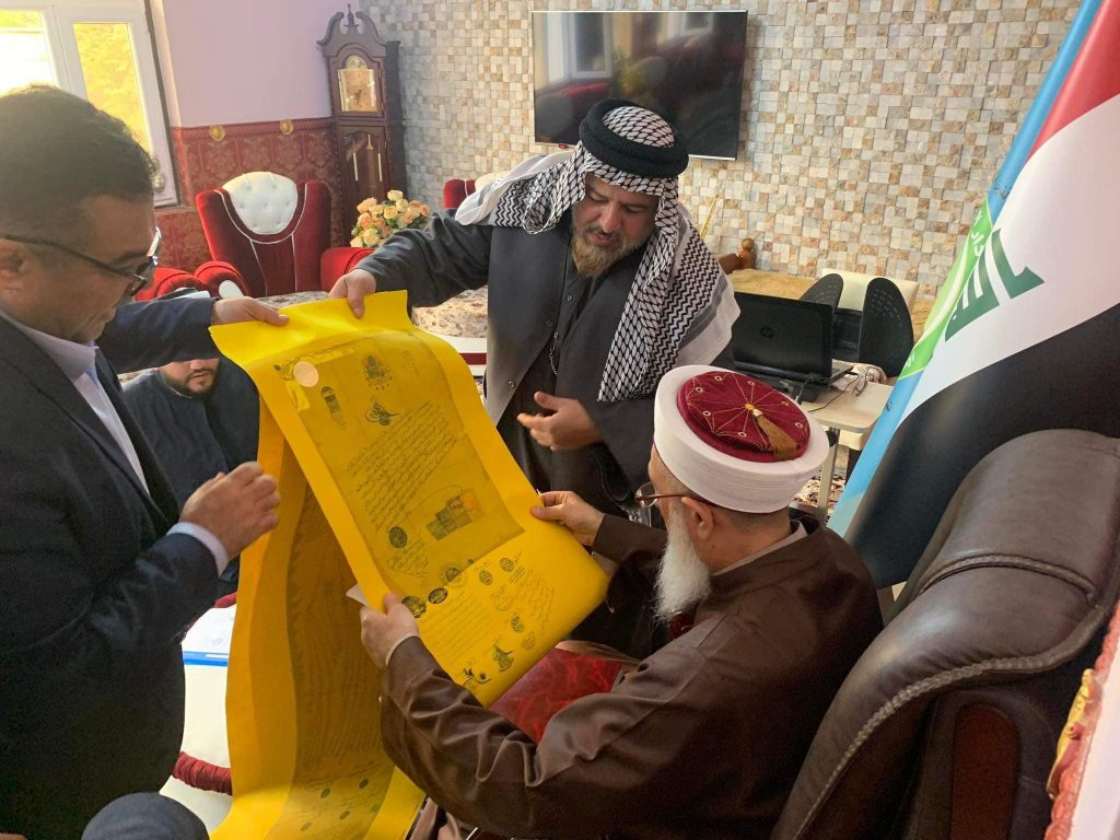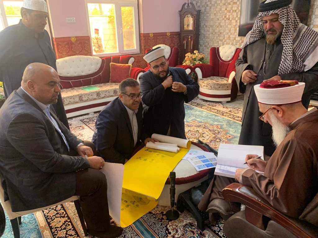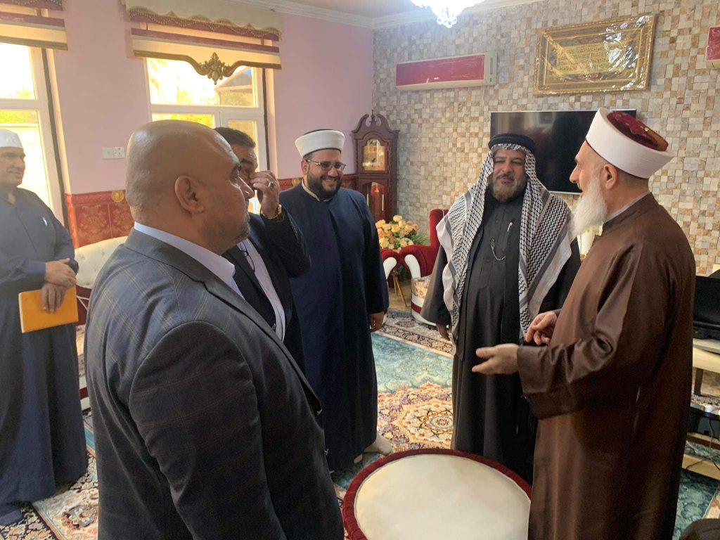 التقى سماحة مفتي الجمهورية ” وفقه الله تعالى ” في محل اقامته ببغداد صباح اليوم الخميس وفد وفد السادة الرضوية الحسينية تألف من السيد فراس عز الدين الغياث والسيد أحمد عز الدين الغياث والسيد مهند النعيمي مدير مكتب الانساب في دار الافتاء والوفد …. كانت الزيارة لمناقشة بعض جذور النسب الرضوي الحسيني … شاكرين سماحته على اتاحة الفرصة للقاء وسماعهم راجين من سماحته لقائهم يوم الاحد للاطلاع على جميع الوثائق داعين الله ان يحفظهم ويرزقه الصحة والعافية .