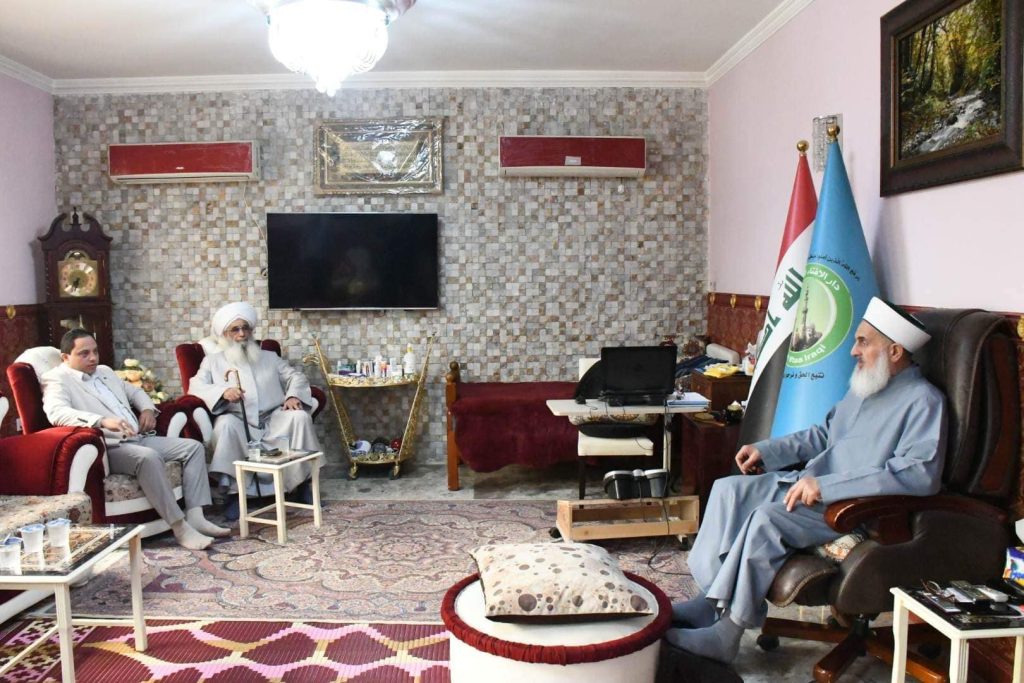 التقى سماحة مفتي الجمهورية ” وفقه الله تعالى ” في محل اقامته ببغداد صباح اليوم الاربعاء وفد منطقة الفرات الاوسط تألف من السيد حاكم جاسم الحسيني والسيد ستار جبار مطرود والسيد خميس محمد كاظم والسيد رائد عامر فالح معاون سكرتير رئيس الوزراء والسيد كريم حسين ، وكانت الزيارة للسلام والتواصل وطرح مشكلتهم راجين من سماحته مساعدتهم والتدخل في حلها ، هذا واطلع سماحته على المشكلة المتعلقة بهم واوعز يإتخاذ ما يلزم بصدد ما جاءو به ، وفي الختام شكر الوفد سماحته على حسن الاستقبال والاستماع اليهم داعين الله ان يحفظك للامة الاسلامية .