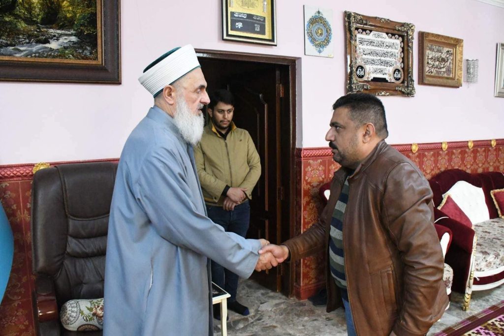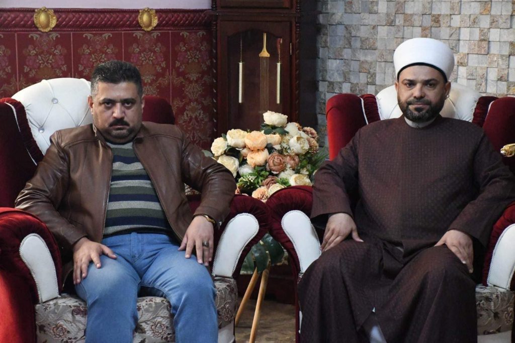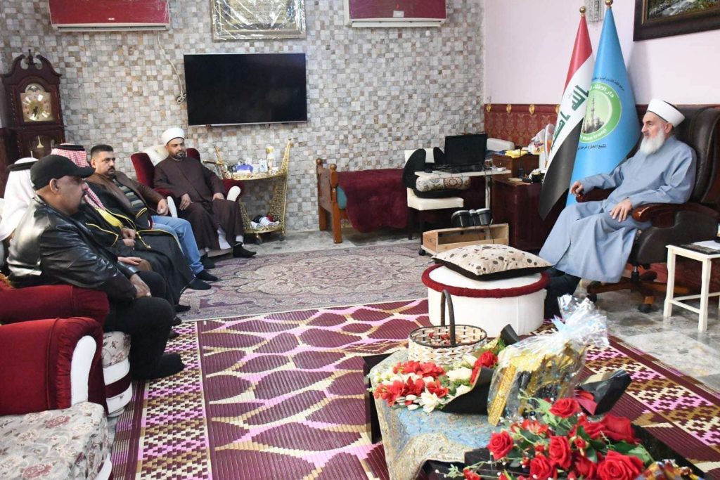 التقى سماحة مفتي الجمهورية ” وفقه الله تعالى ” في محل اقامته ببغداد صباح اليوم الخميس وفد محافظة نينوى تألف من الشيخ لؤي النعيمي والشيخ خالد الطائي والسيد علي الصميدعي والسيد علي الخزعلي وكانت الزيارة لحل مشكلة تتعلق بين عشيرتين والوقوف على مخرجات المشكلة هذا واوضح الوفد ما لديه من معلومات تهم القضية وفي الختام شكر الوفد سماحته على سعيه في حلها والاستماع اليهم داعين الله ان يحفظه للامة الاسلامية ويكون عونا للعراقيين من دانبه أكد سماحته ضرورة حسم الموضوع خلال مدذة أقصاها 4 أيام ة وعدم ترك الموضوع والقضية معلقة .